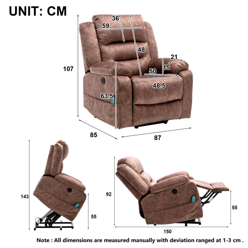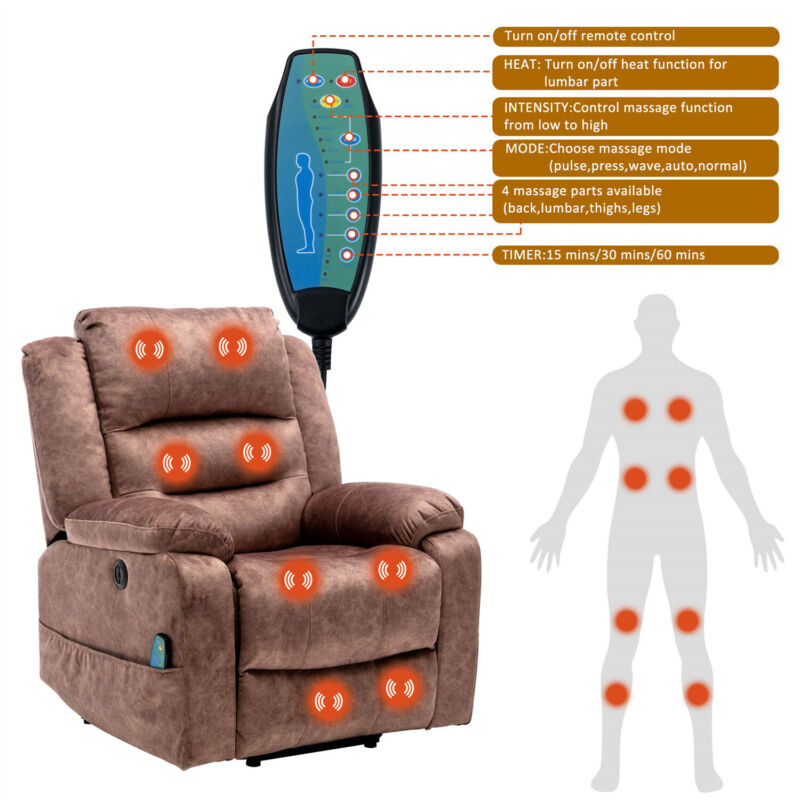 Electric Power Lift Recliner Chair Sofa Power Armchair Heated Massage Brown
