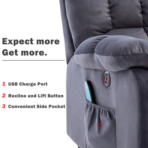 Electric Power Lift Riser Recliner Chair Sofa W/ Massage and Heat Armchair Grey