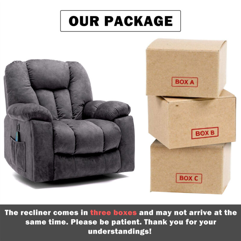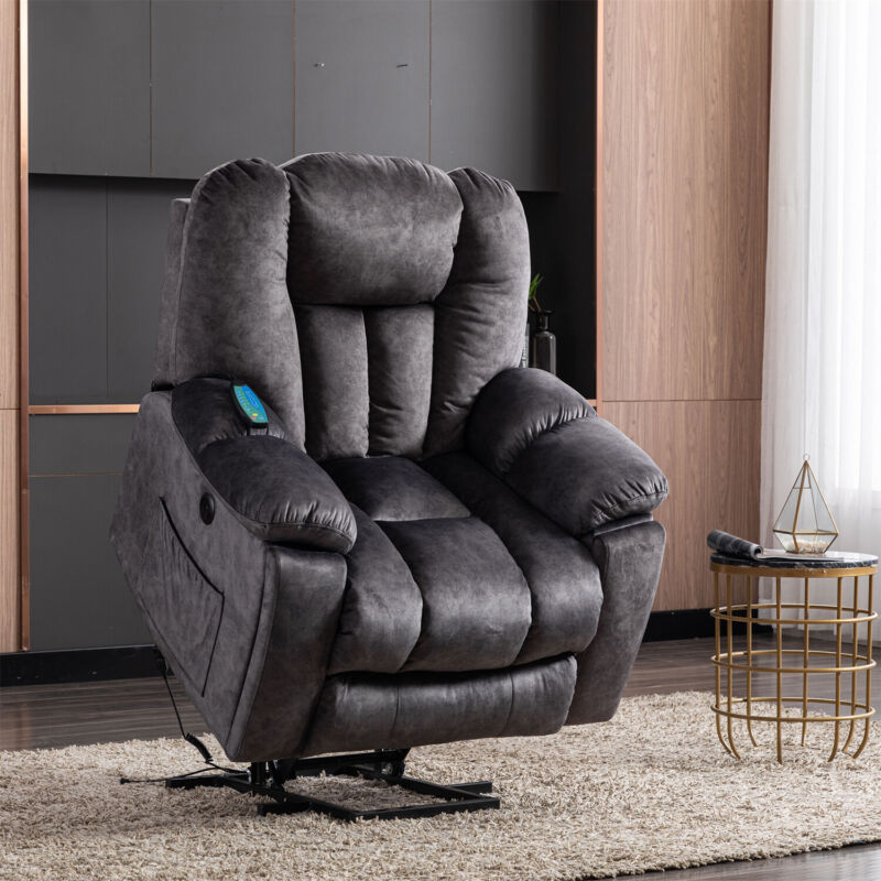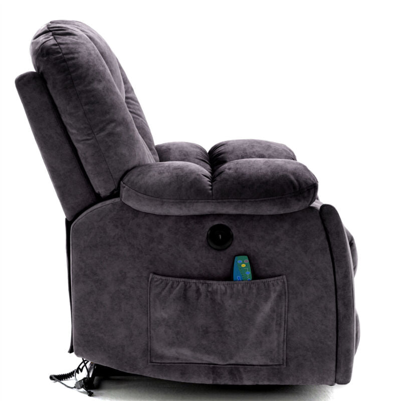 Electric Power Massage Lift Cinema Recliner Velvet Riser Heated Chair Sofa Grey