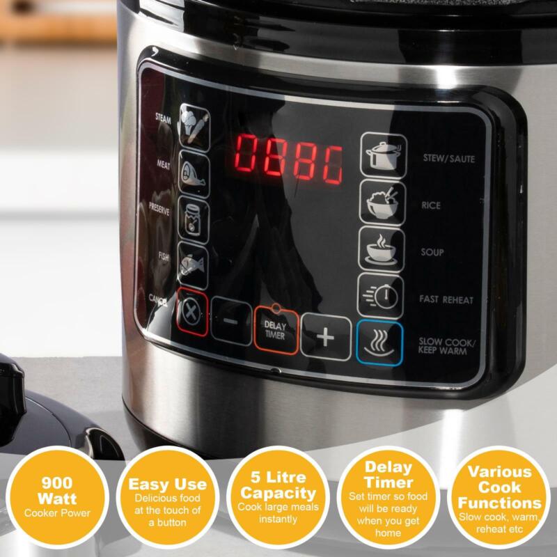 Electric Pressure Cooker 5L Steriliser Slow Cooker Rice Steamer Warmer 900W