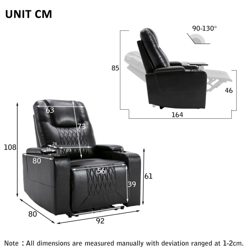 Electric Recliner Chair Lighting Gaming Home Theater Seating Leather Sofa QW