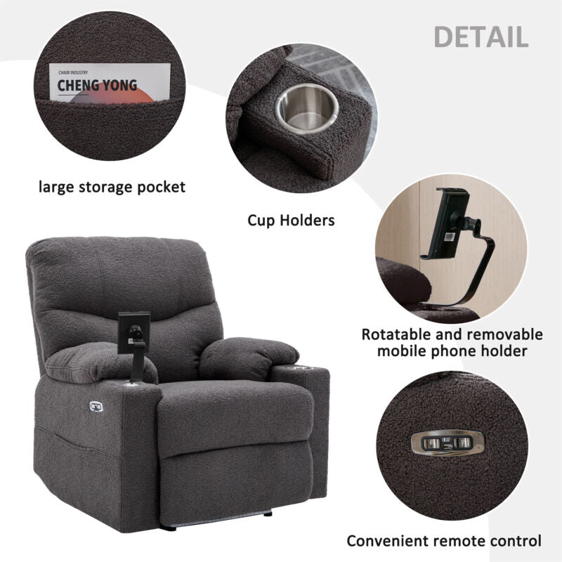 Electric Recliner Chair Sofa TV Armchair Cinema Chair with 2 Cup Holders Grau