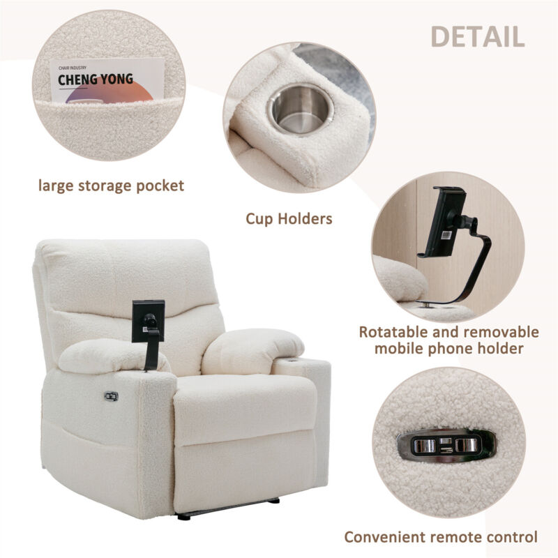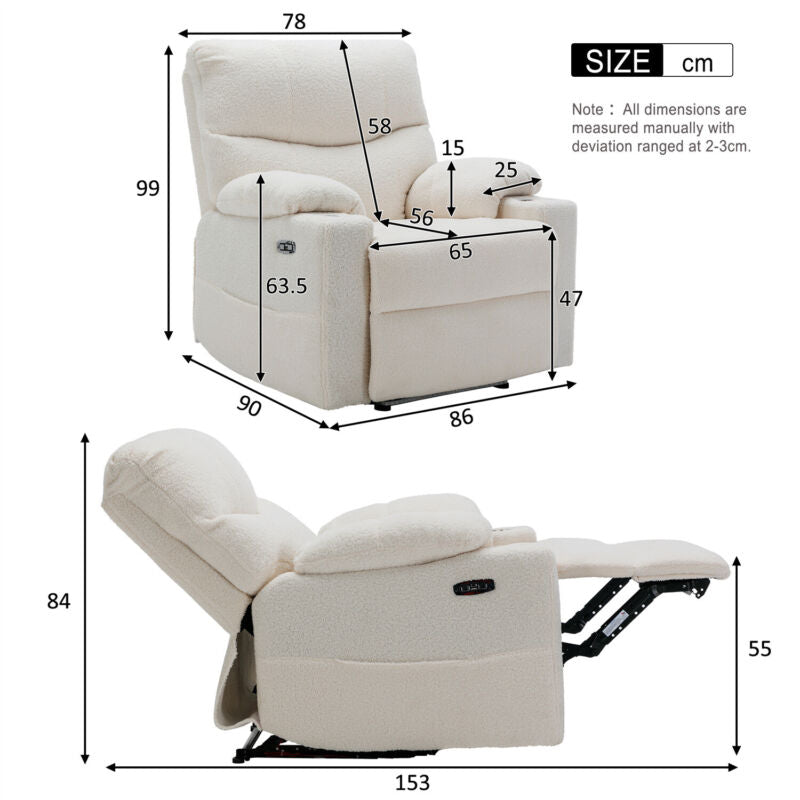Electric Recliner Chair Sofa TV Armchair Cinema Chair with 2 Cup Holders White