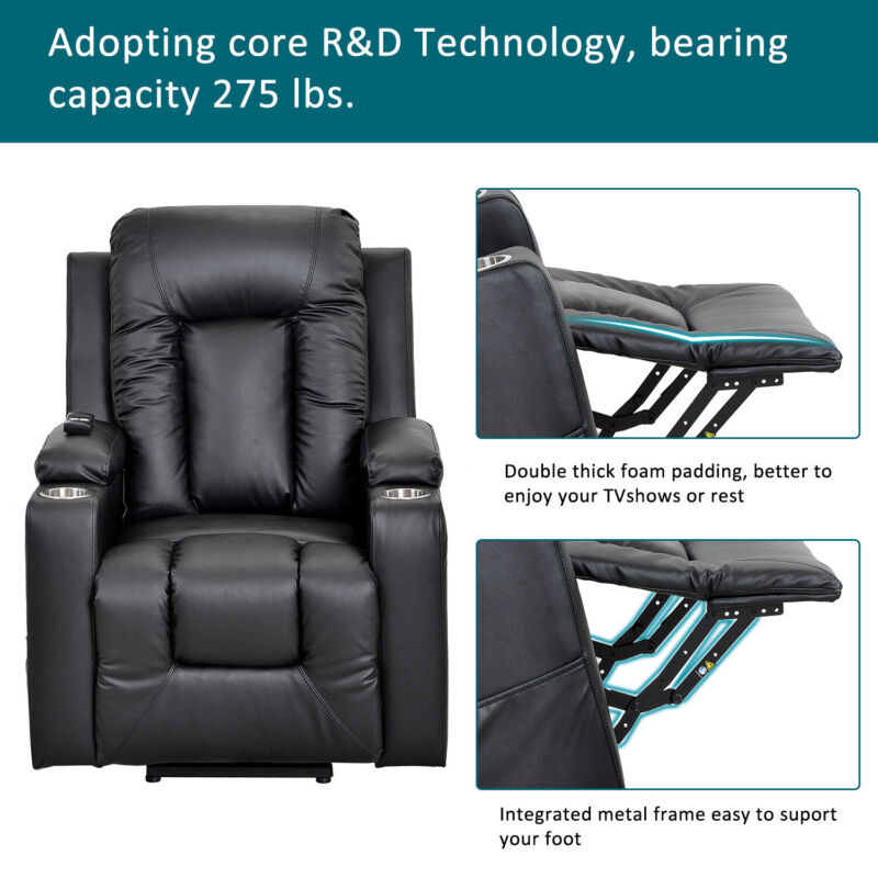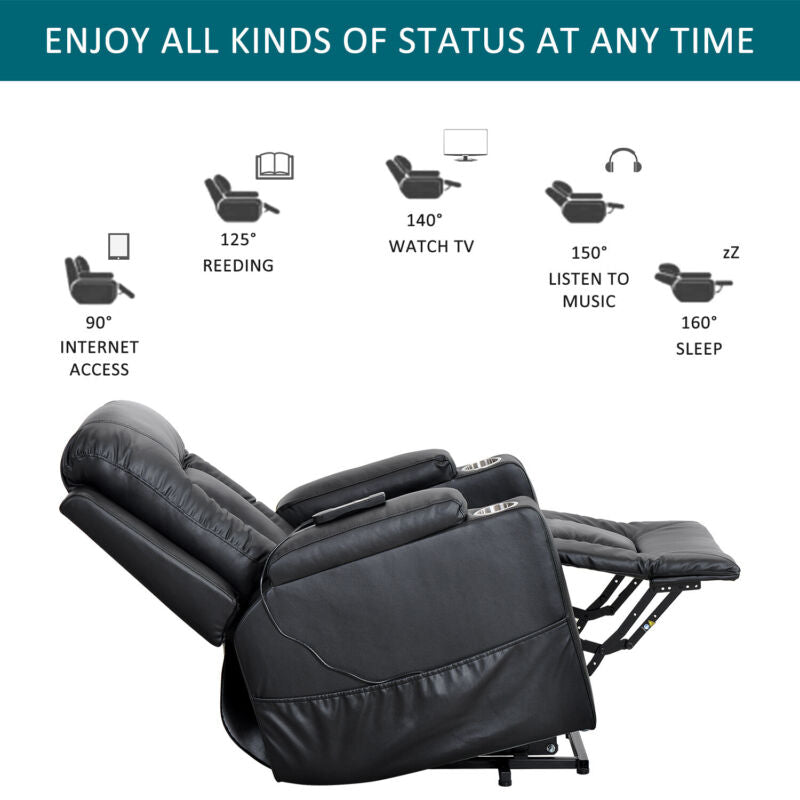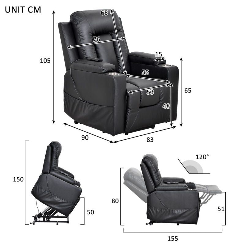 Electric Rise Power Lift Pu Leather Recliner Armchair Sofa Chair Black QA