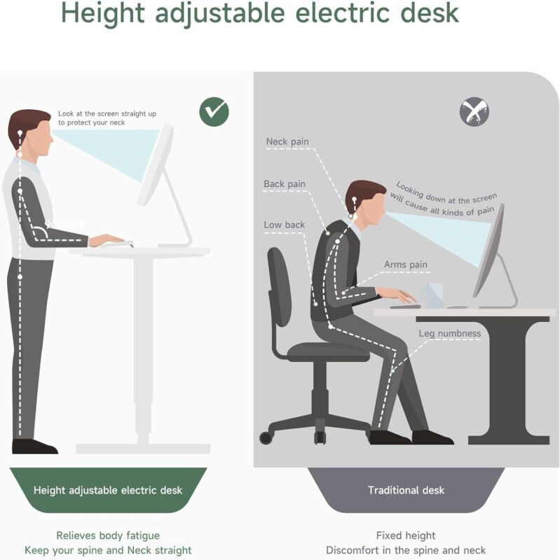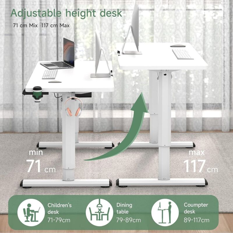 Electric Standing Desk Height Adjustable w/Cup Holder Headphone Hook Cable Clip