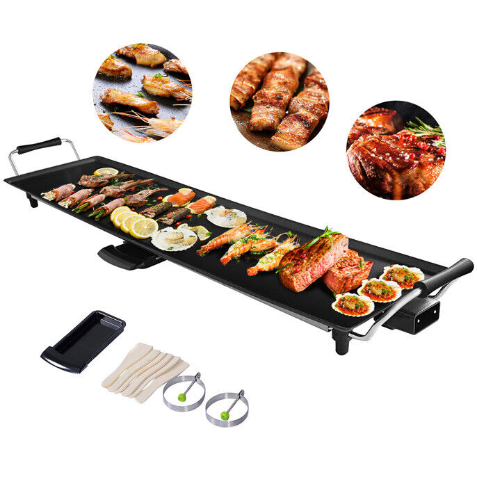 Electric Teppanyaki Table Grill 48 x 27CM Non-Stick Griddle BBQ Hot Plate 2000W