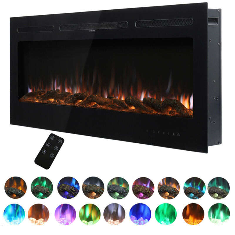 Electric Wall Mounted LED Fireplace 9 Color Wall Inset Into Fire Heater + Remote