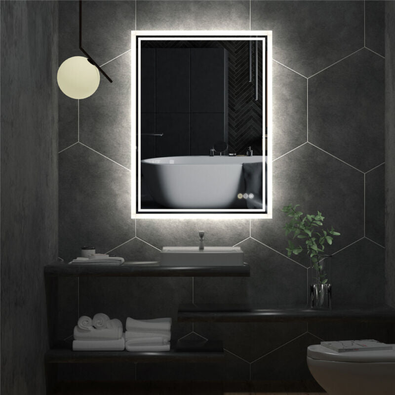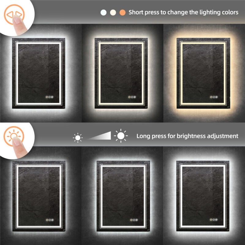 Elegant Bathroom Mirror Dual Light LED Wall lighted Mirror Vertically Horizontal
