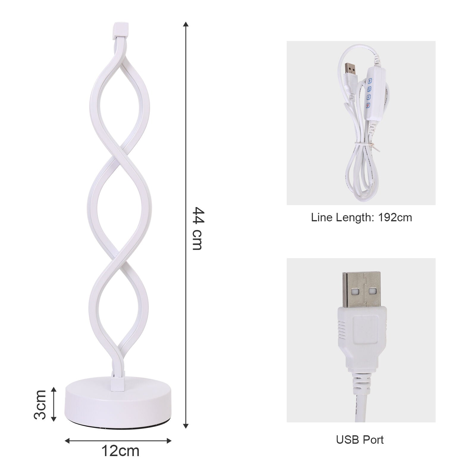 Elegant Spiral Table Lamp Bedside Bed USB Corded Led Light Night Light Reading