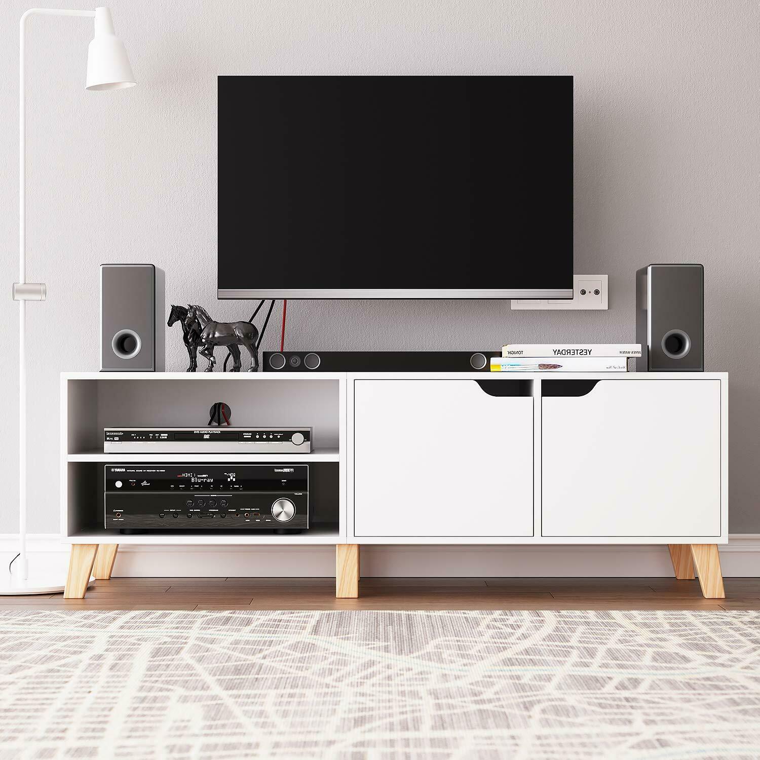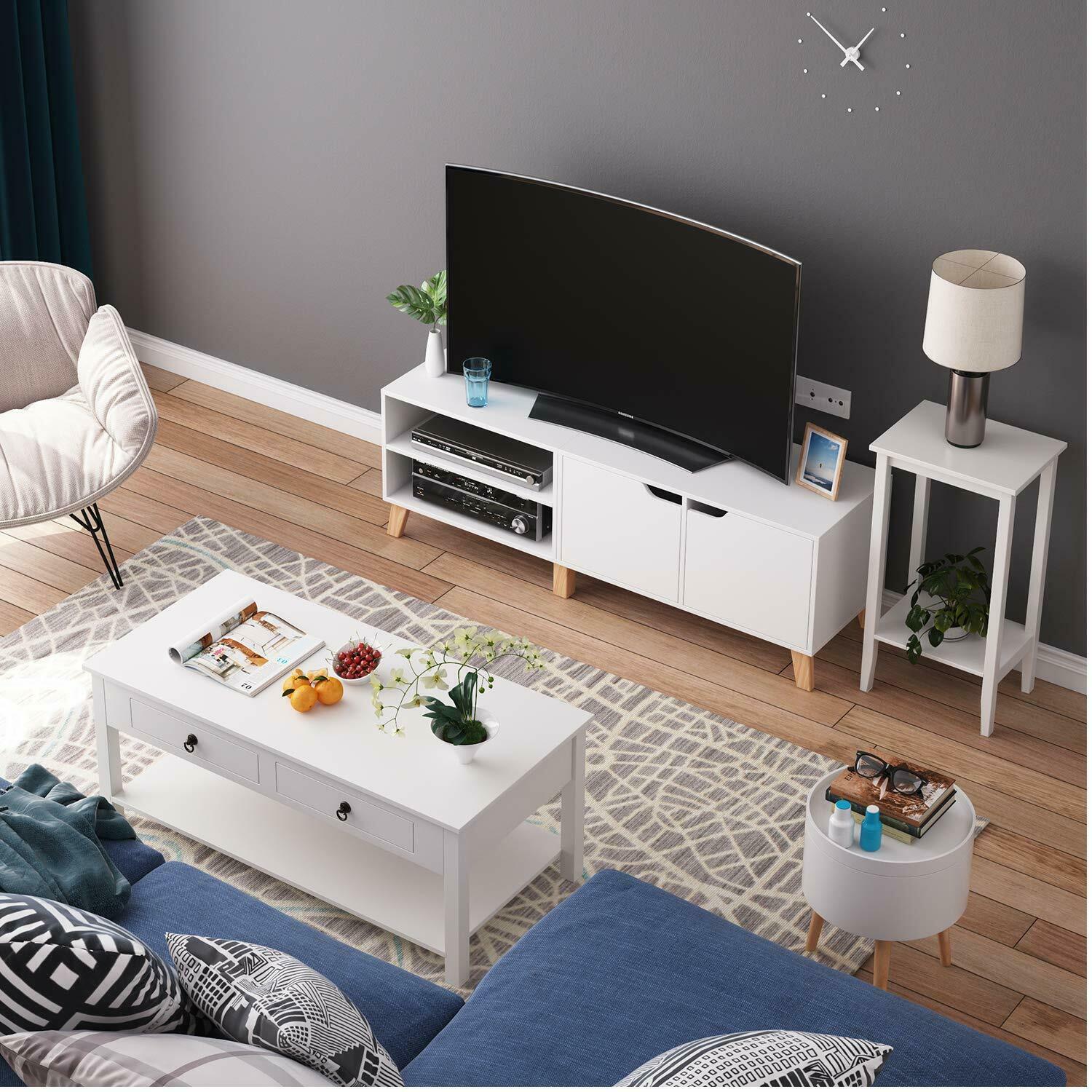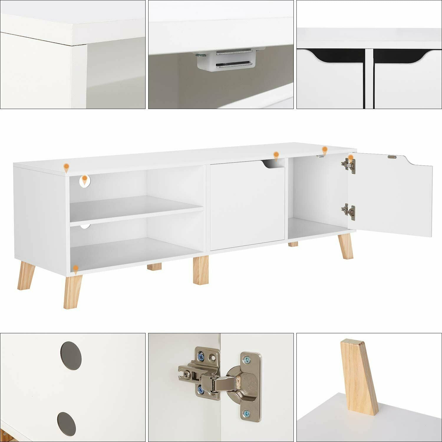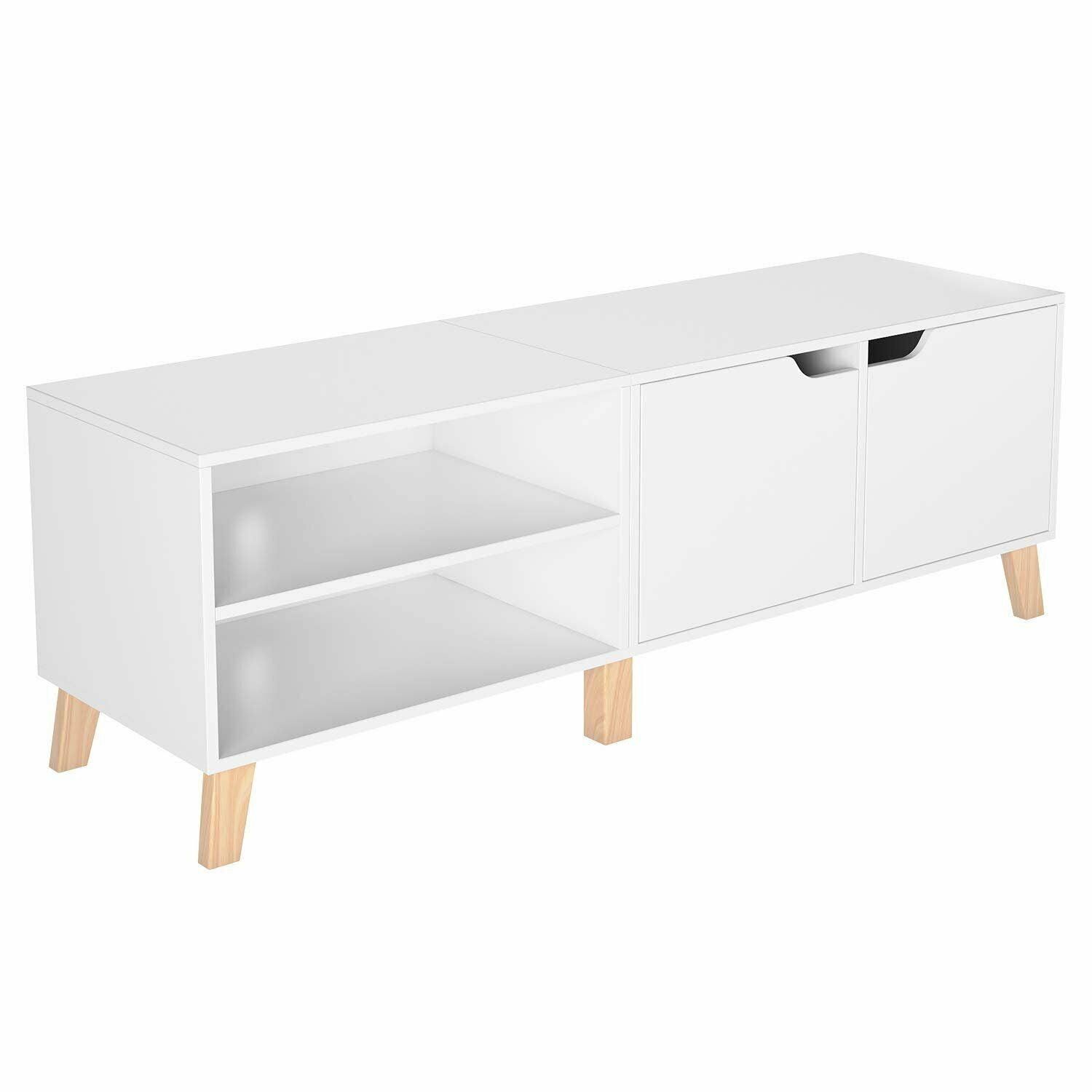 Elegant TV Stand Storage Cabinet Unit w/ Wood Legs 2 Cupboards 2 Shelves White