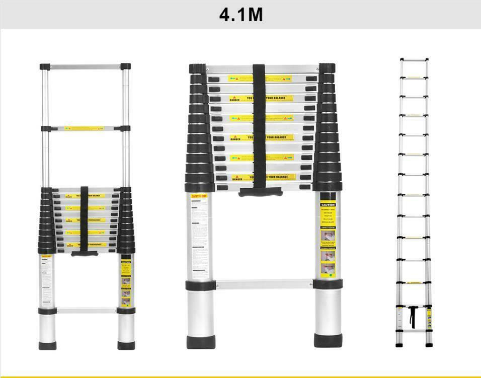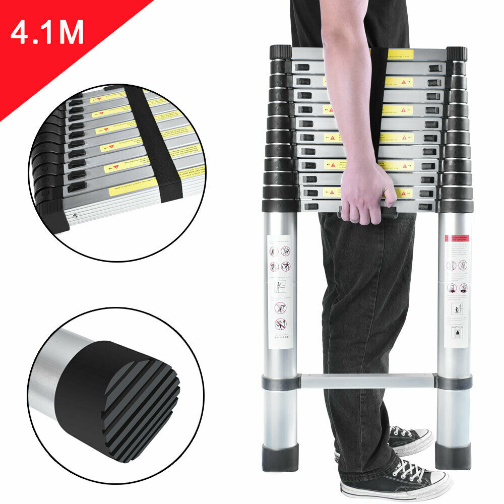 EN131 Heavy Duty Telescopic Ladder Multipurpose Extendable Laders Aluminium 4.1m