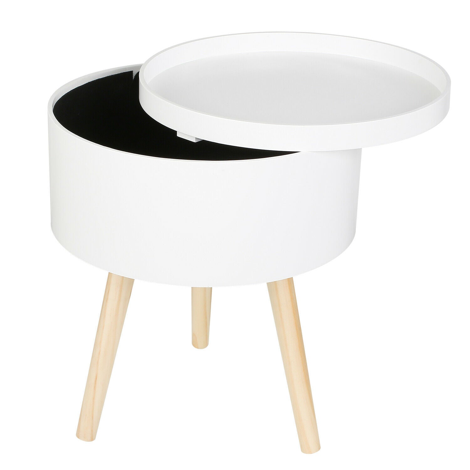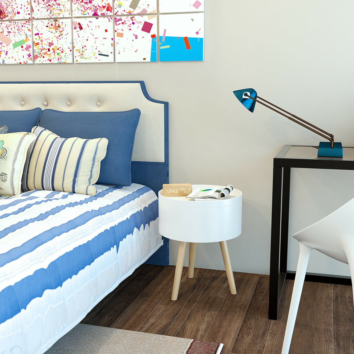 End Table Coffee Round with Storage Tray Rotatable Side Table Sofa Table Wooden