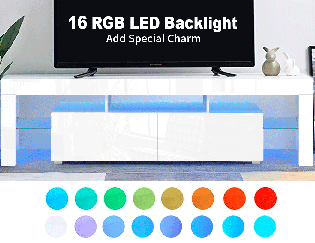 Entertainment Unit TV Cabinet Stand High Gloss Doors 160cm with LED Lights