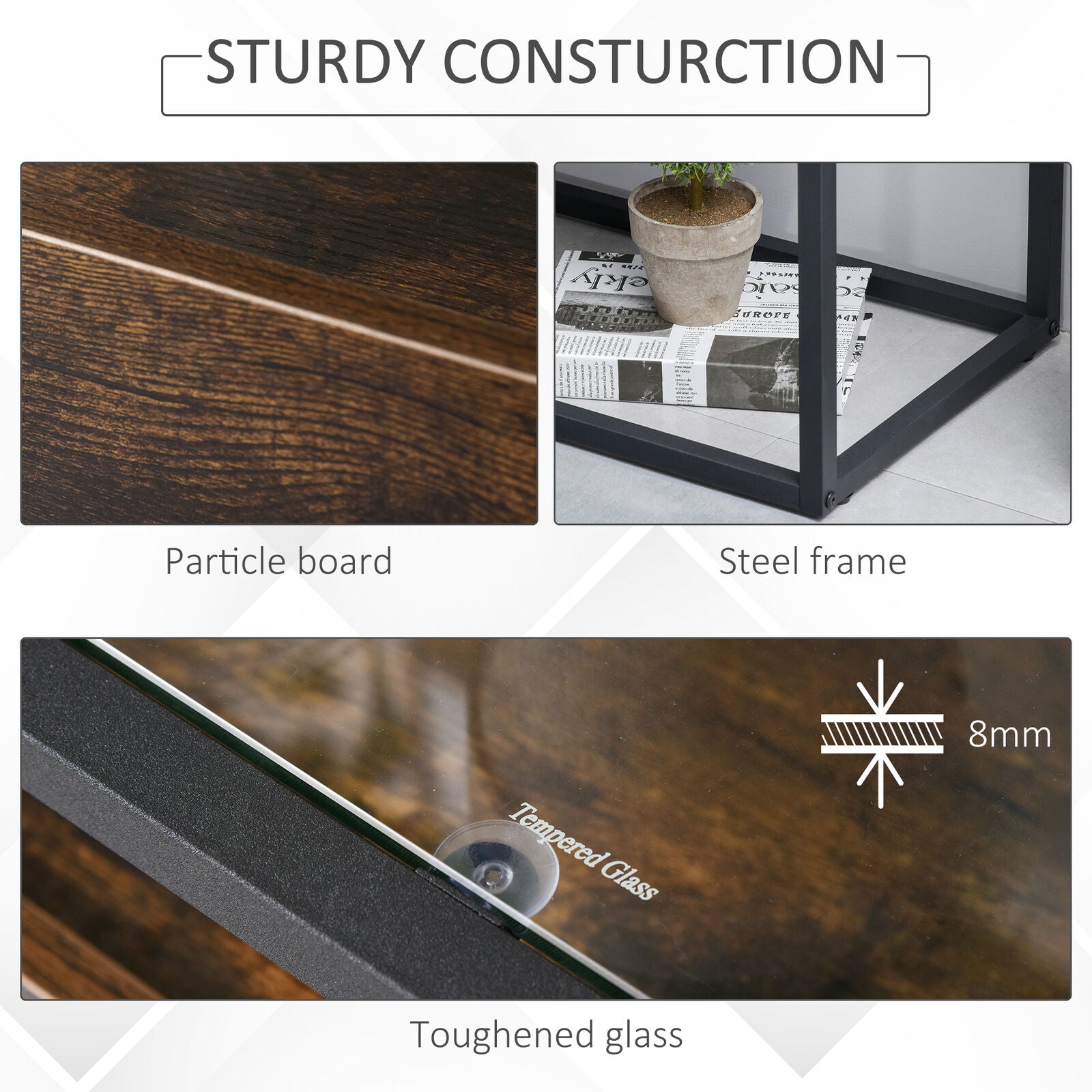 Entryway Console Table Desk with Drawers, Toughened Glass Shelf, 3D Wood Grain