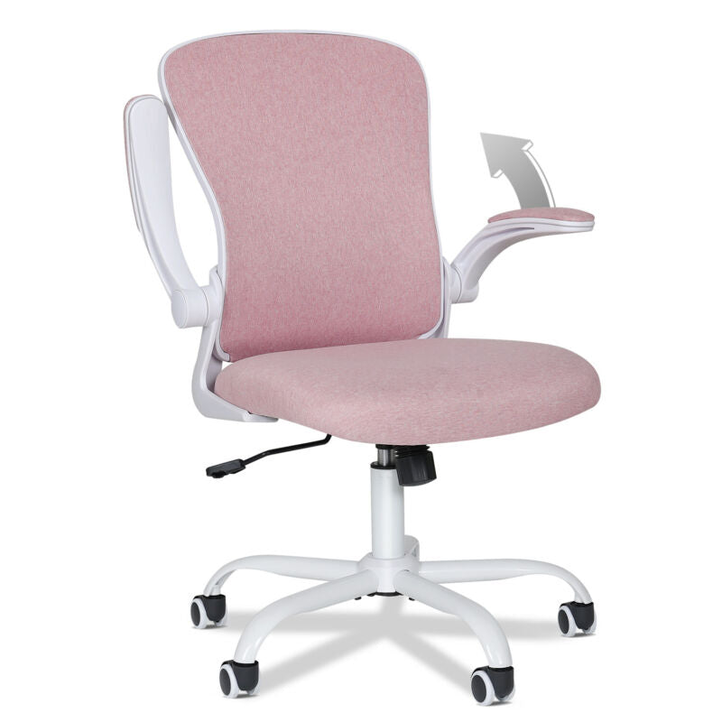 Ergonomic Computer Desk Chair Foldable Armrests Lumbar Support Home Office Pink