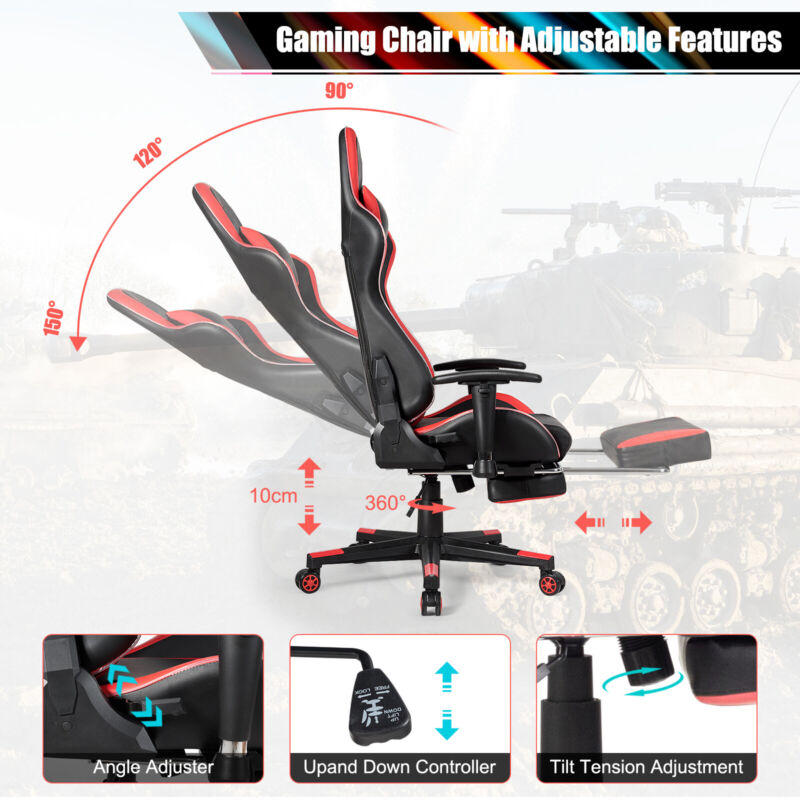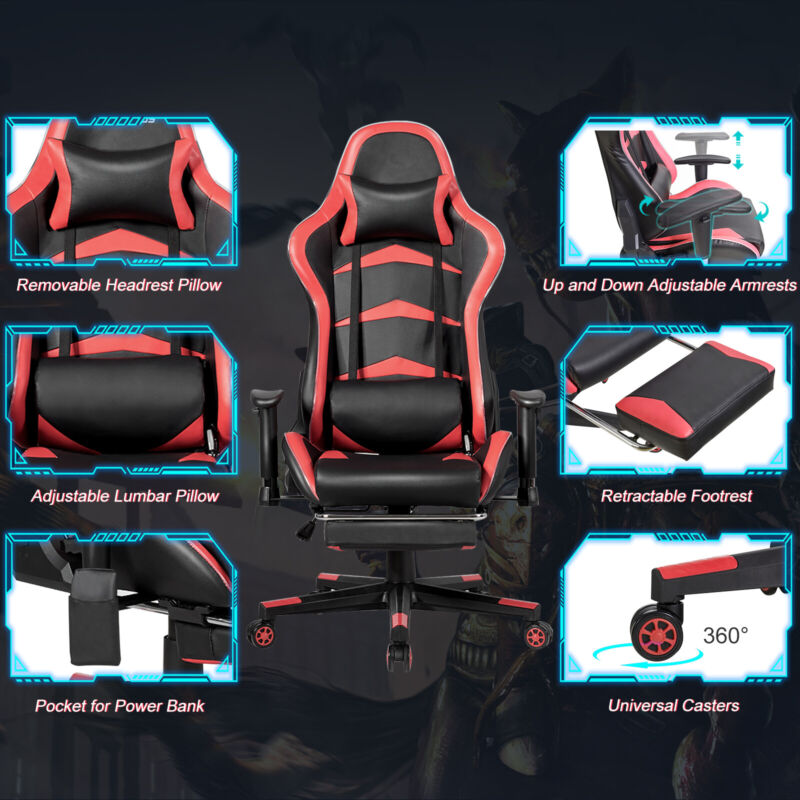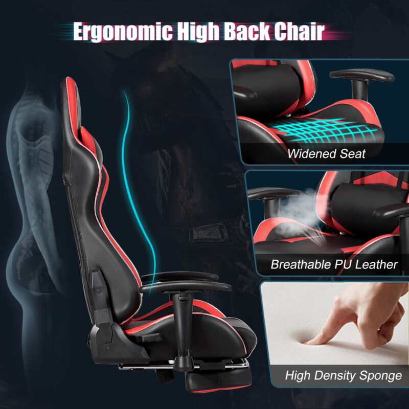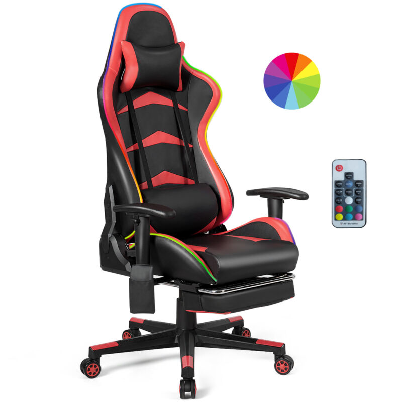 Ergonomic Gaming Chair Adjustable High Back Computer Chair W/ Remote Control LED
