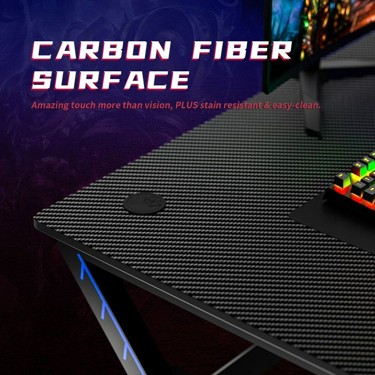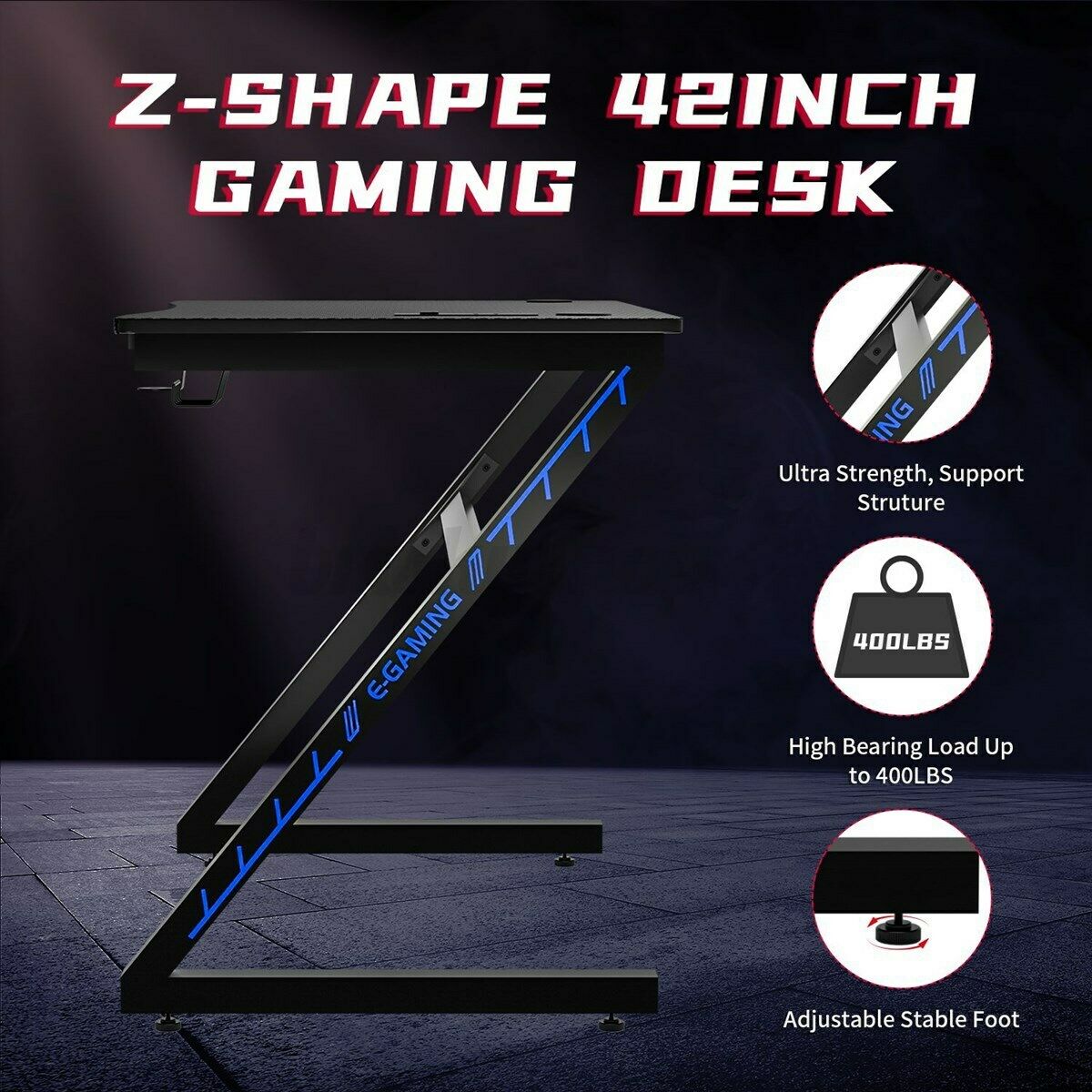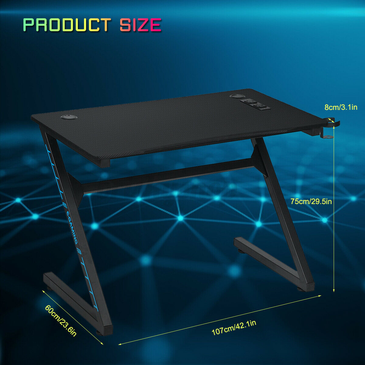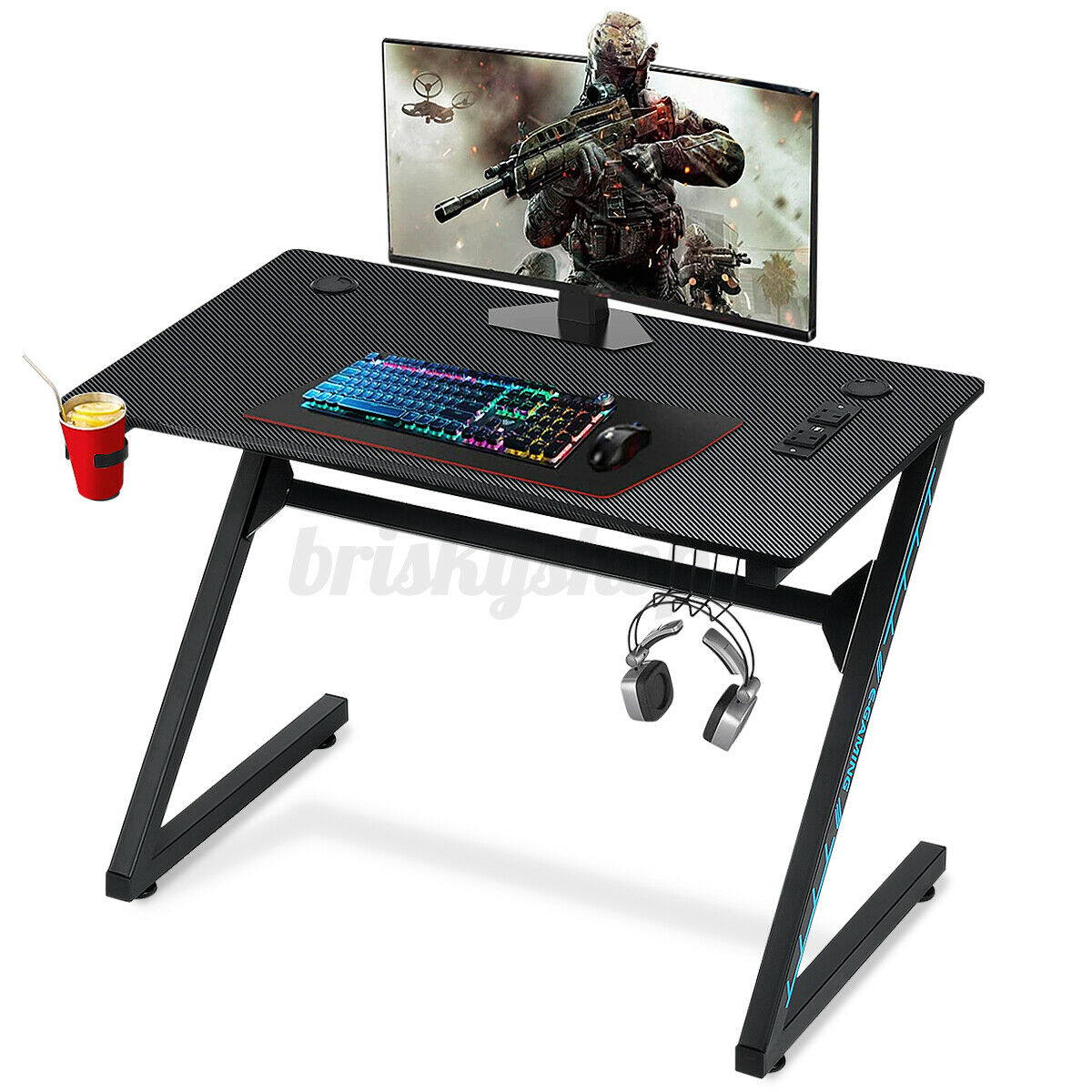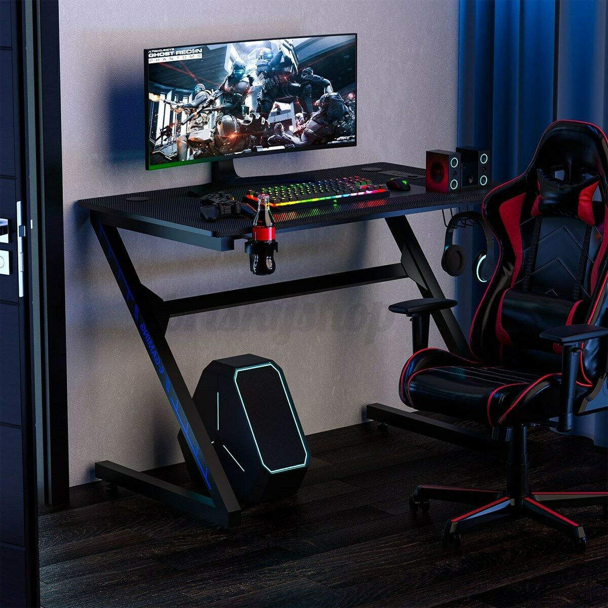 Ergonomic Gaming Desk PC Computer Table w/ Cup Holder Headphone Hook Home Office