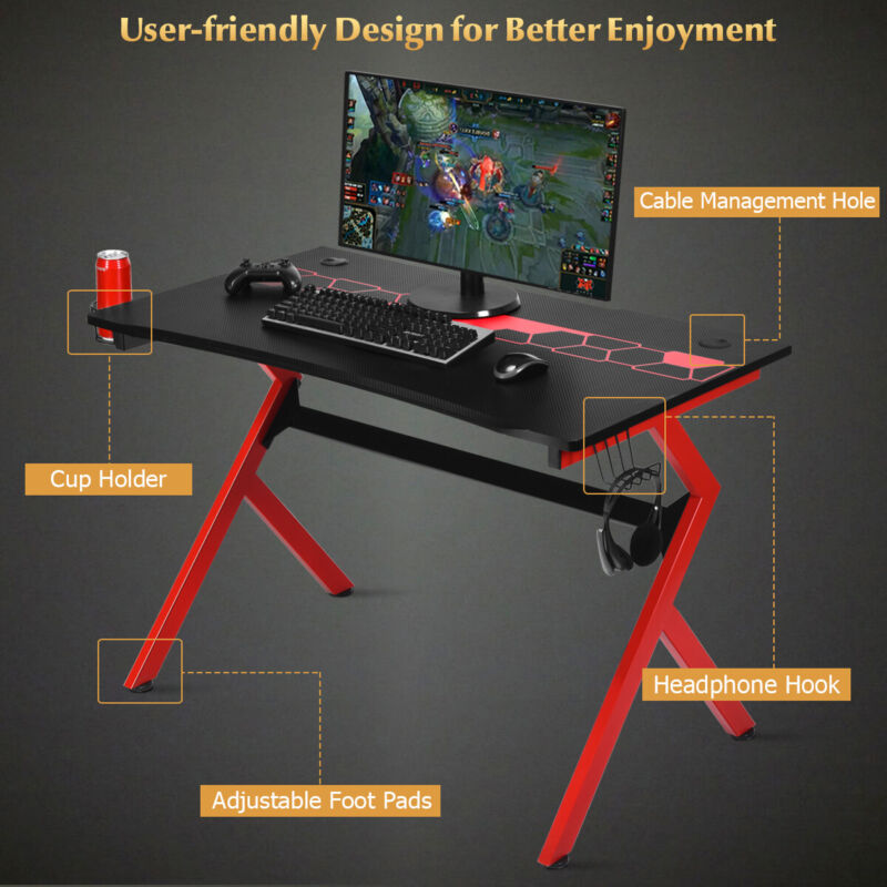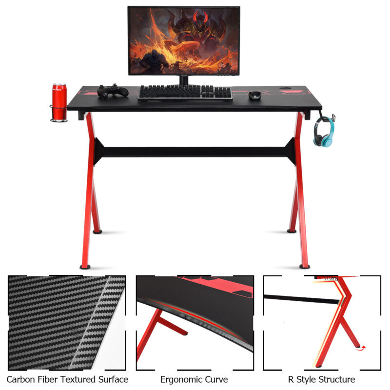 Ergonomic Gaming Desk R-Shaped Racing Computer Table Workstation Home Office