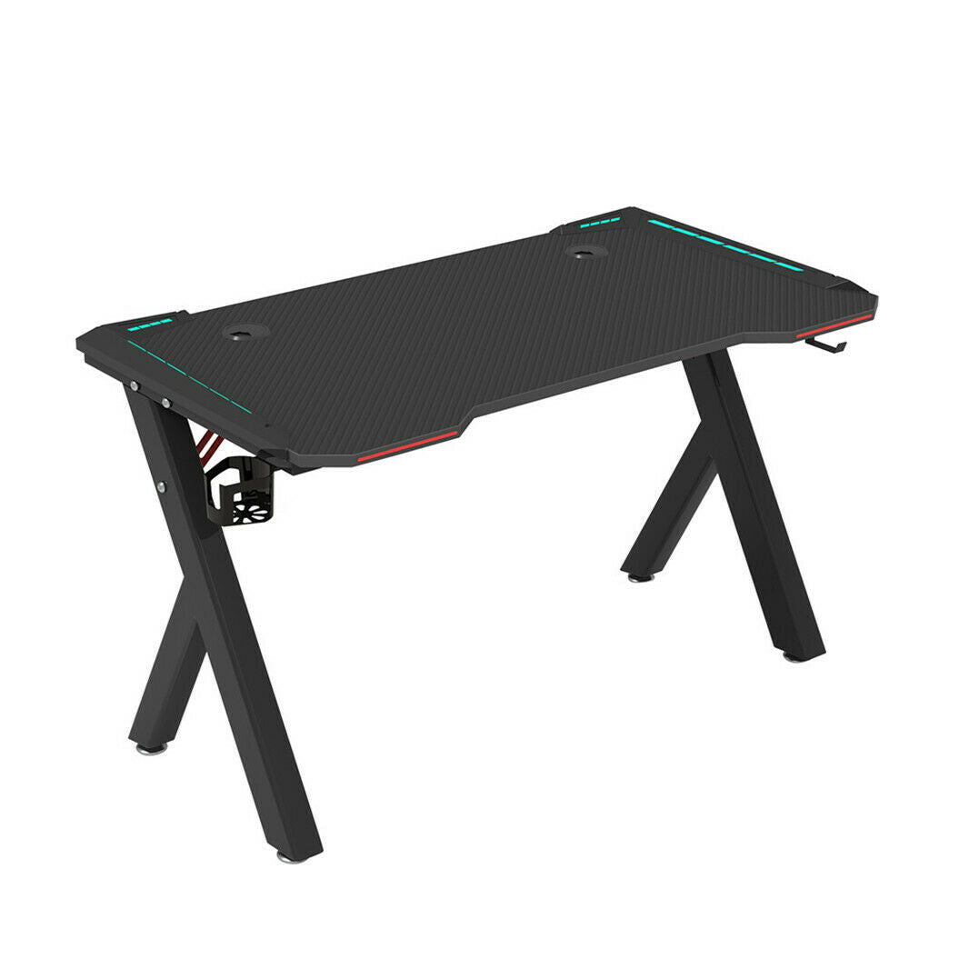 Ergonomic Gaming Table LED Computer Racing Desk RGB & Cup Holder Headphone Hoder