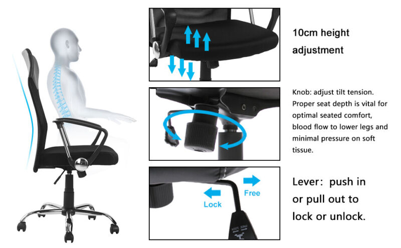 Features Casters/Wheels, Ergonomic, Lumbar Support, Swivel, Cantilever Leg, Chair Base, High Back, Mesh Back, Padded Seat, Posture Curved Back, Chair Gas Lift, Heavy Duty, Mesh Seat, Tilt Control