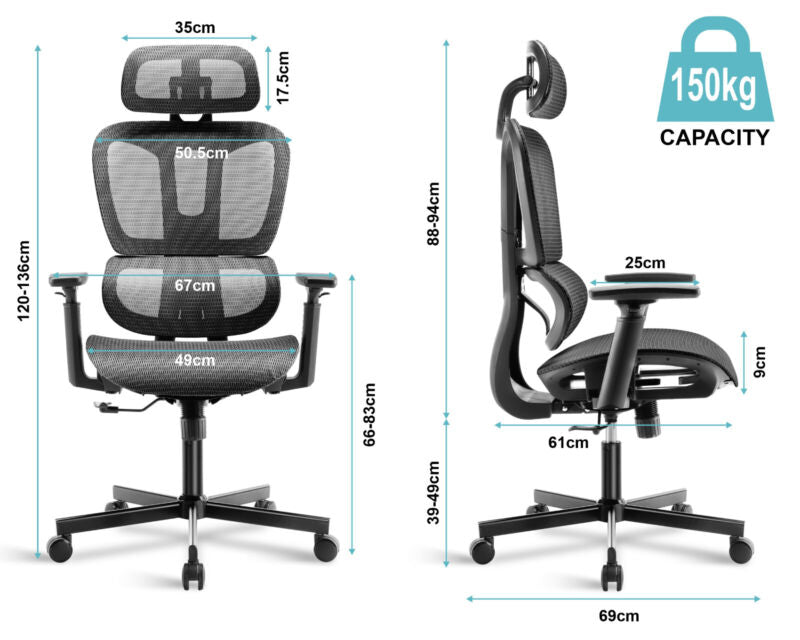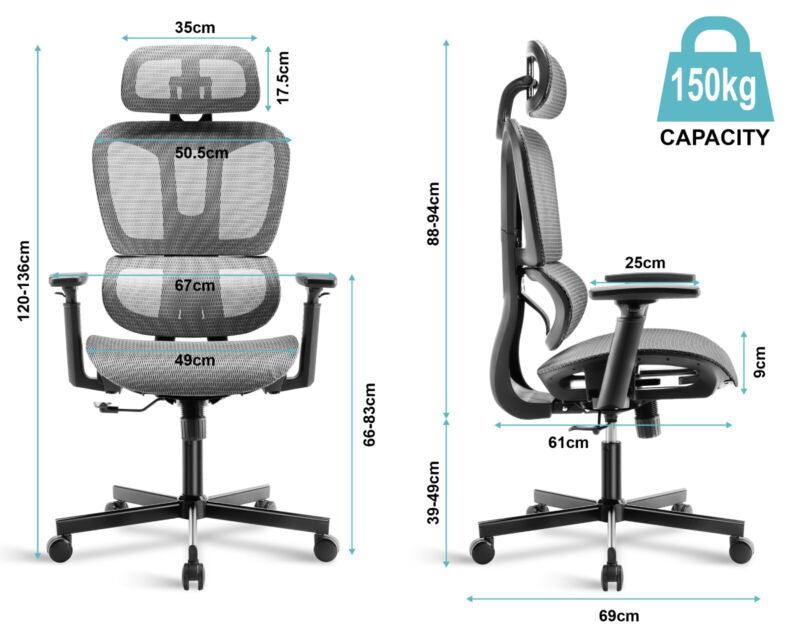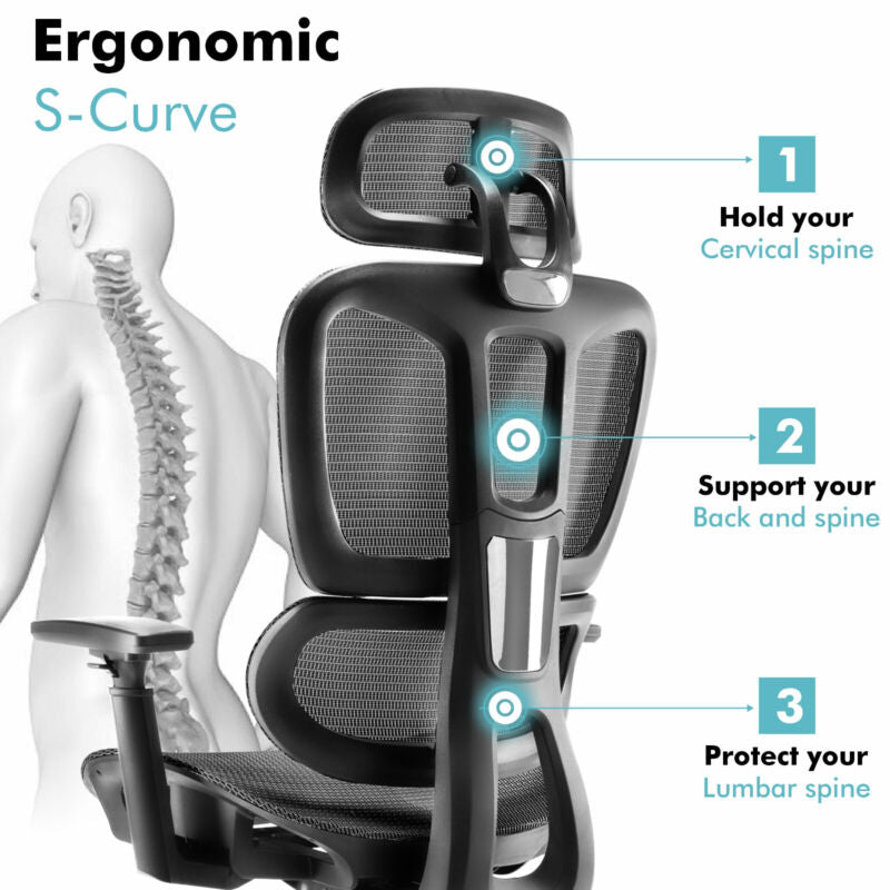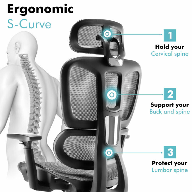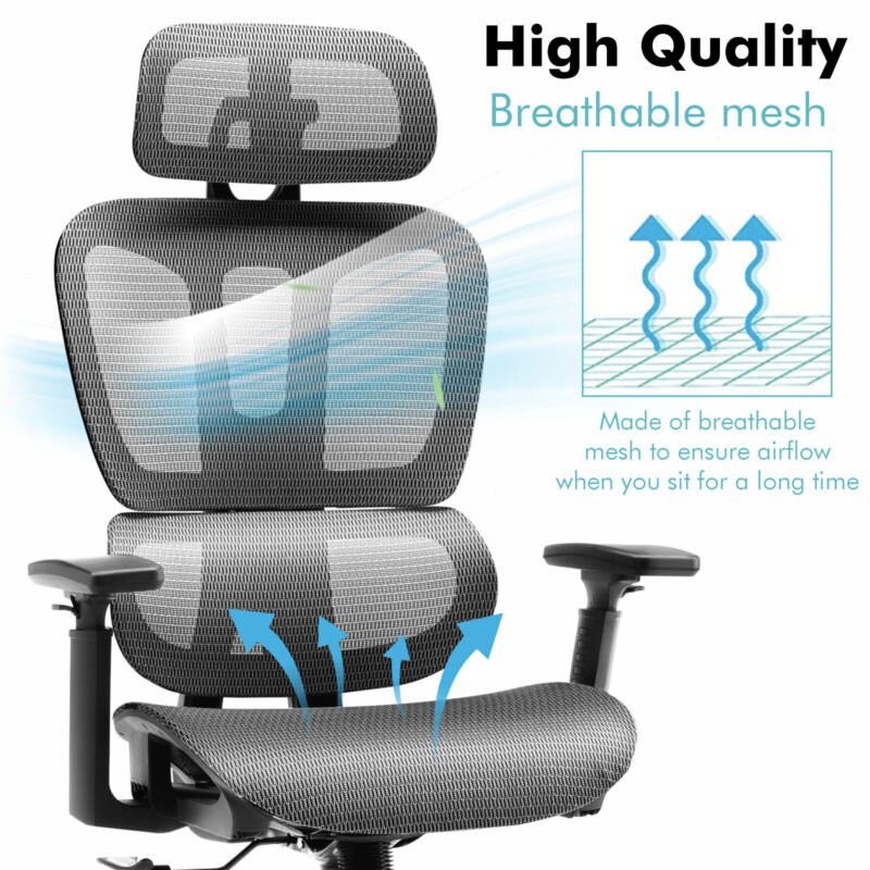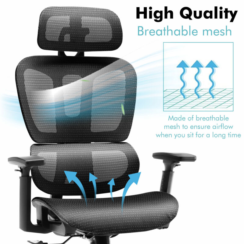 Features Adjustable Chair, Casters/Wheels, Chair Gas Lift, Ergonomic, Fire Retardant, Heavy Duty, High Back, Lumbar Support, Mesh Back, Mesh Seat, Padded Arms, Padded Seat, Posture Curved Back, Swivel, Tilt Lock