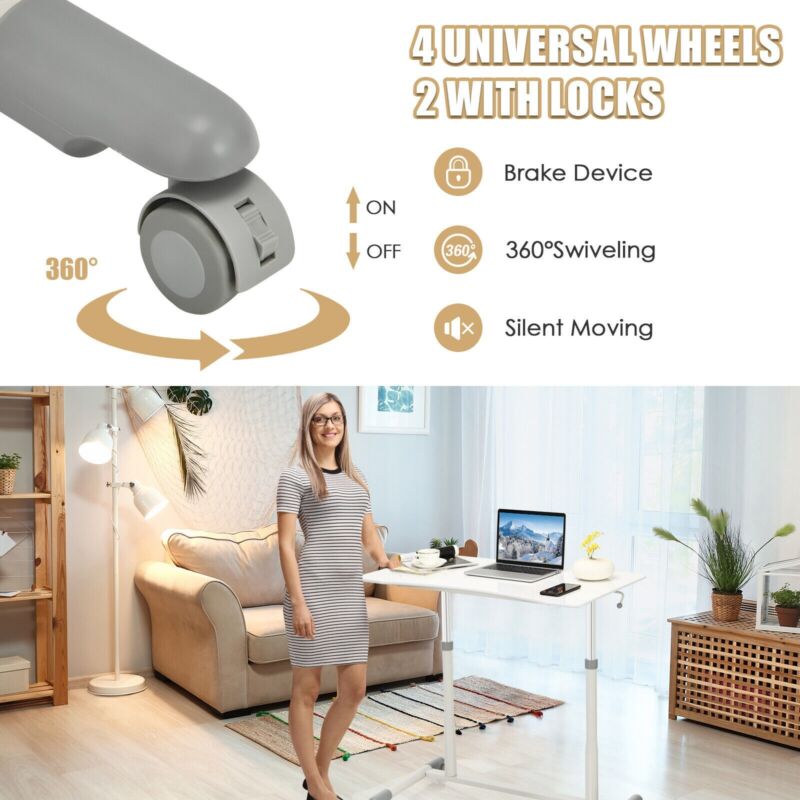 Ergonomic Standing Laptop Table Lifting Desk Home Office Workstation w/ Wheels