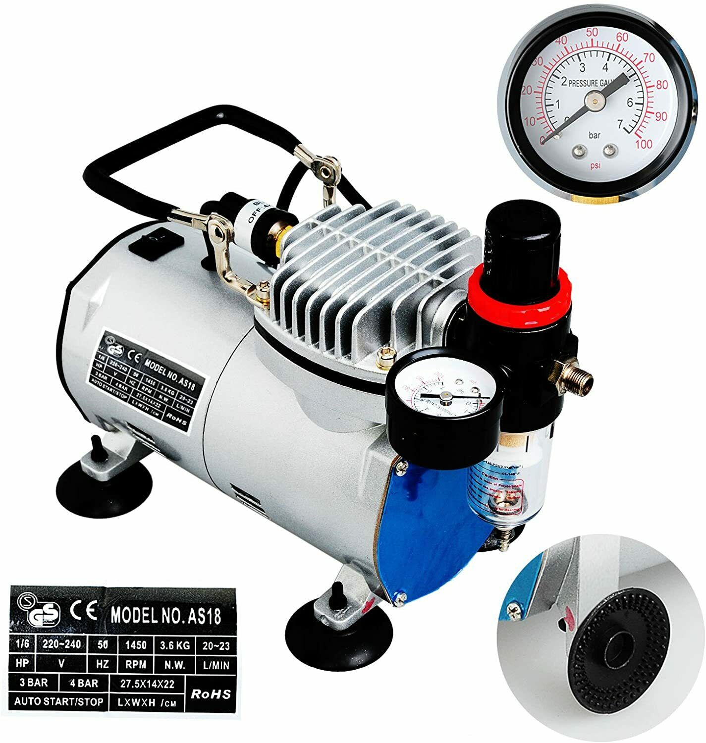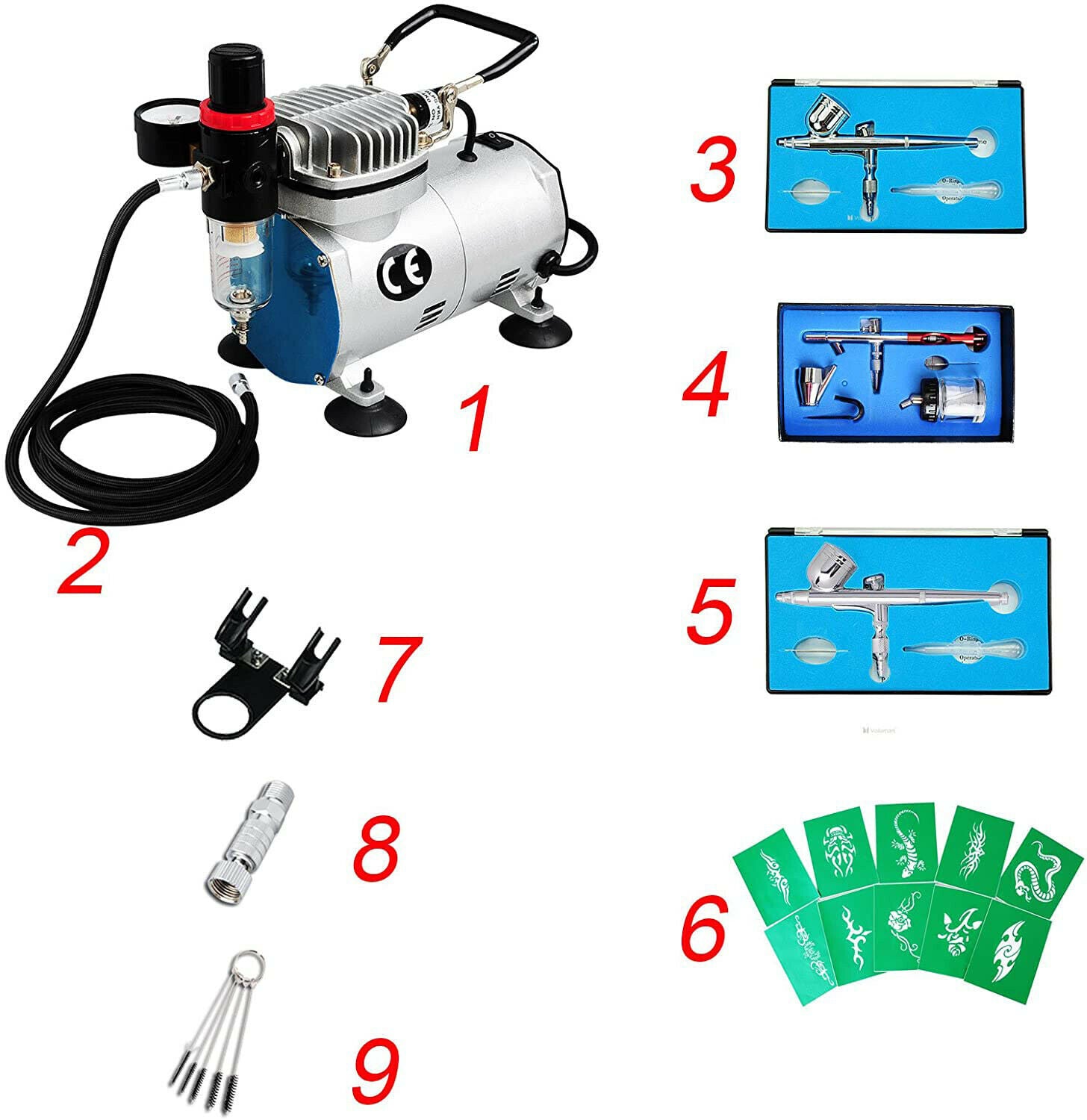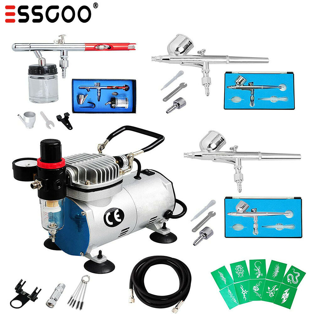 ESSGOO Professional 3 Airbrush Kit With Air Compressor Dual-Action Hobby Spray