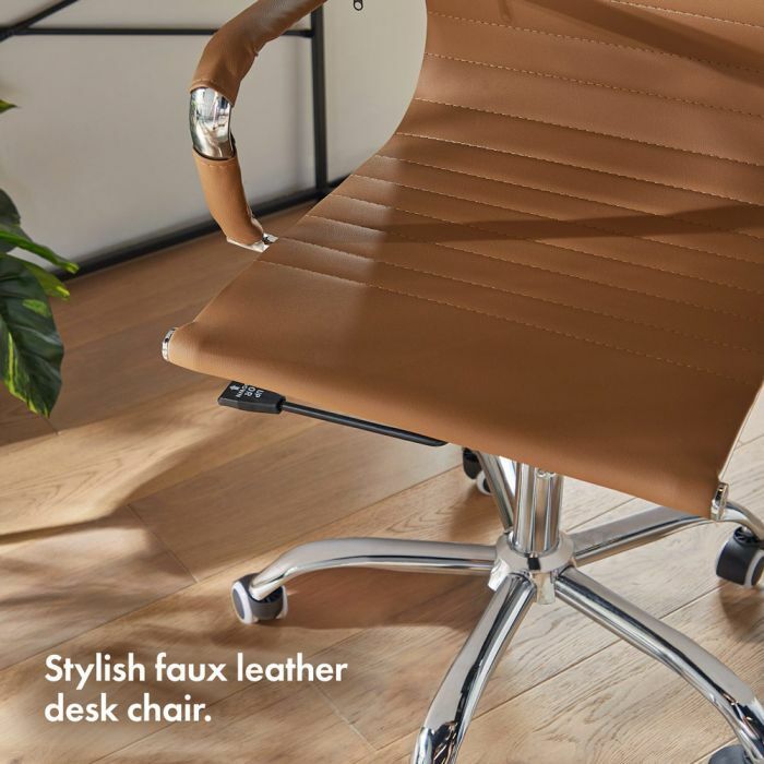 Ex Display Desk Chair, Tan Faux Leather Adjustable Height, Swivel Home Office