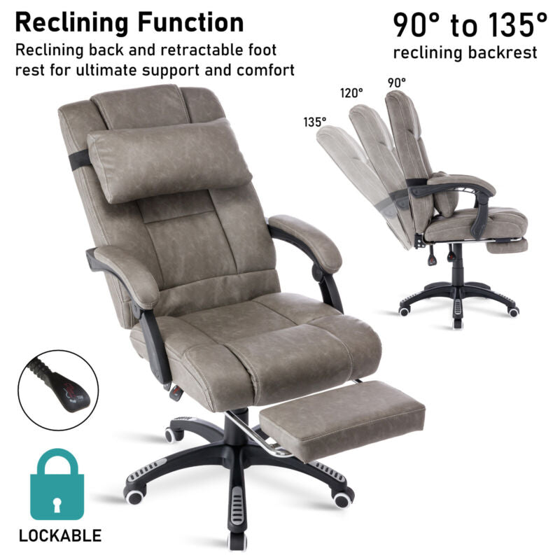 Executive Gaming Office Chair High Back Recliner Computer Desk Chair W/Footrest