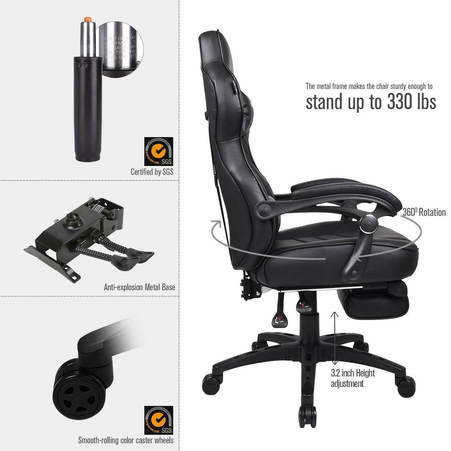 Executive Office Racing Gaming Chair Adjustable Swivel Computer Desk Recliner PU