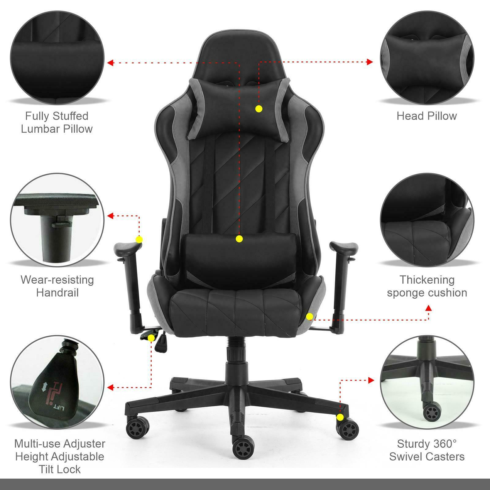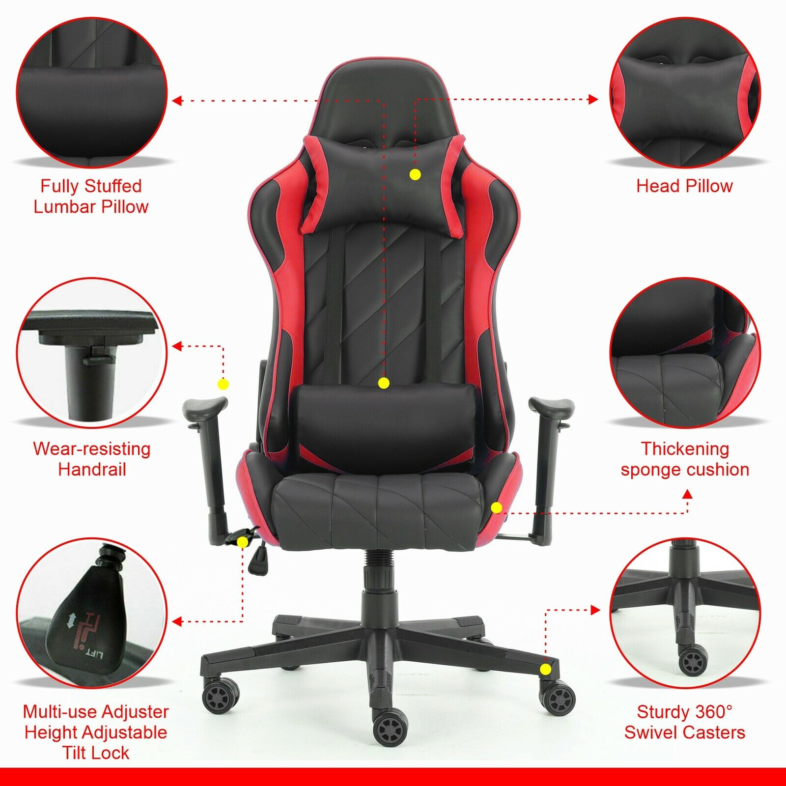Executive Racing Gaming Office Chair Swivel Recliner Computer Desk Chair Leather
