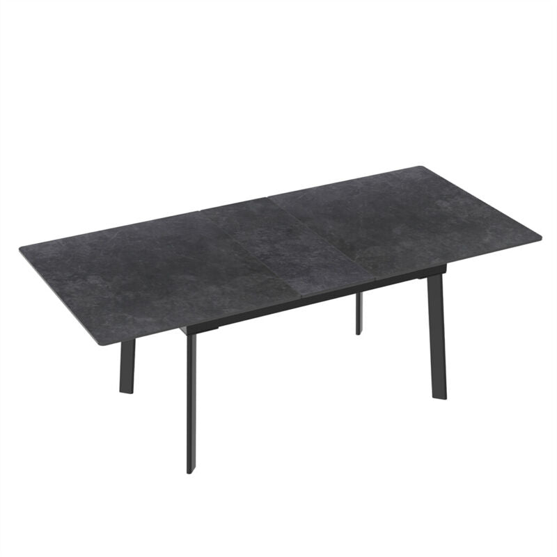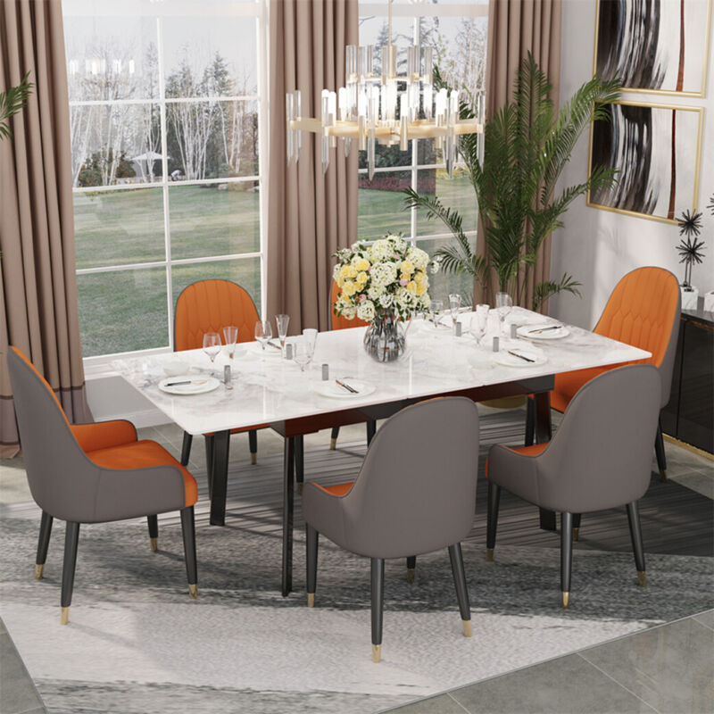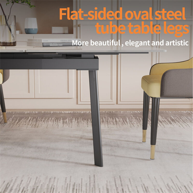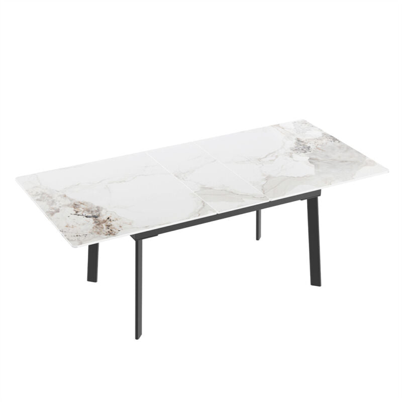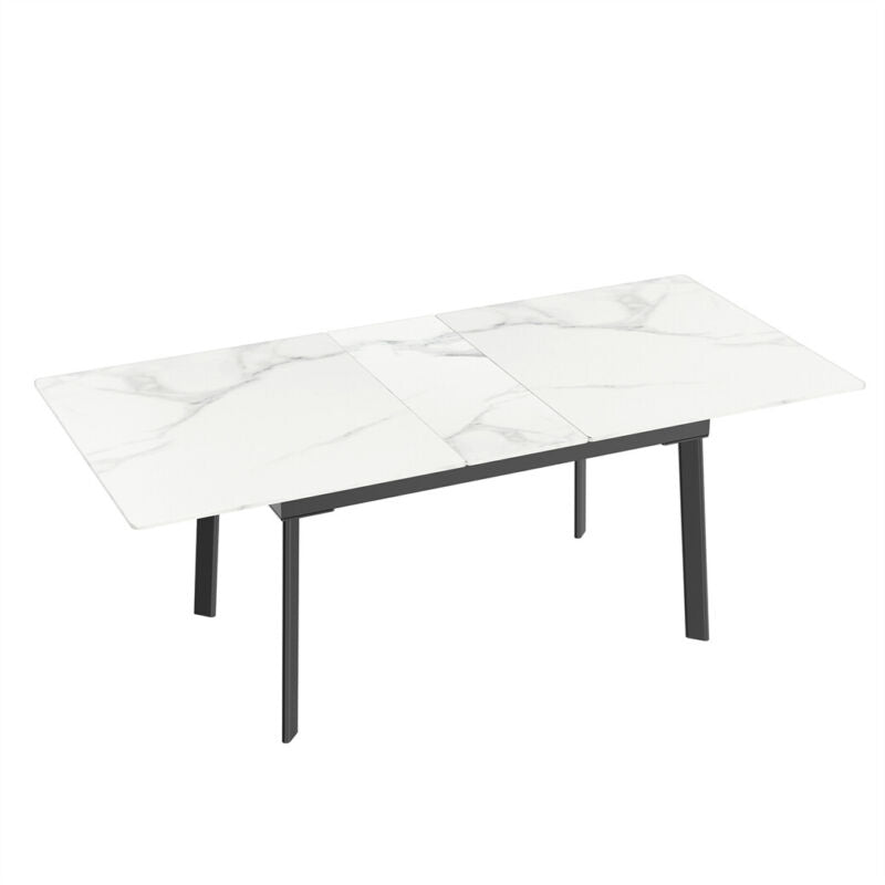 Extendable Dining Table with Marble Top Black Metal Frame Kitchen Home Furniture