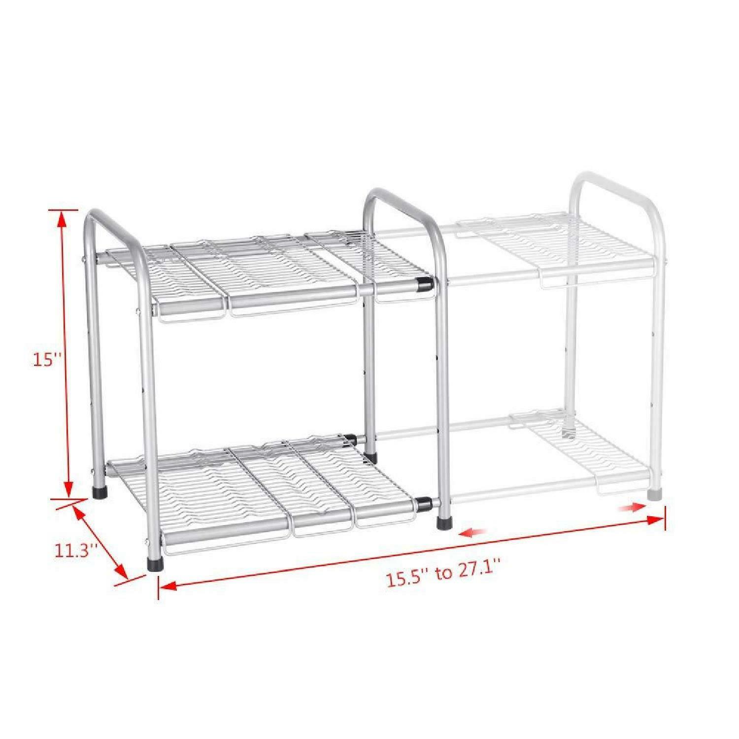 Extendable Multi Purpose 2 Tier Kitchen Under Sink Organiser Storage Rack Shelf