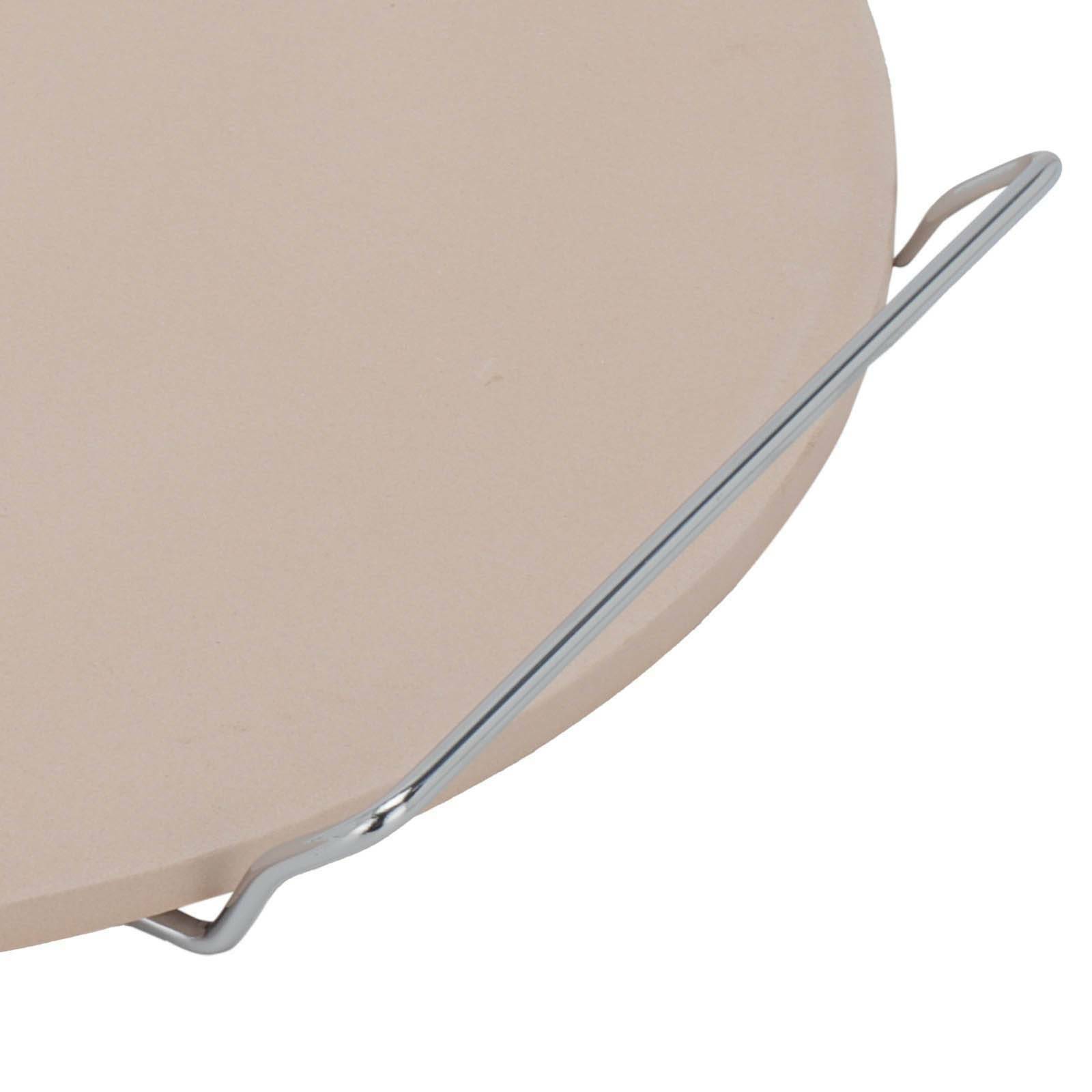 EXTRA LARGE CERAMIC PIZZA BAKING STONE SET CHROME STAND 33CM + FREE PIZZA CUTTER