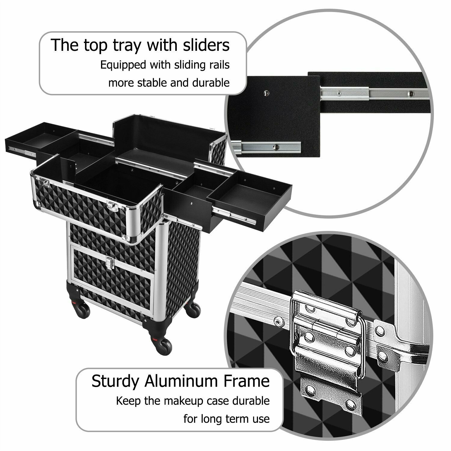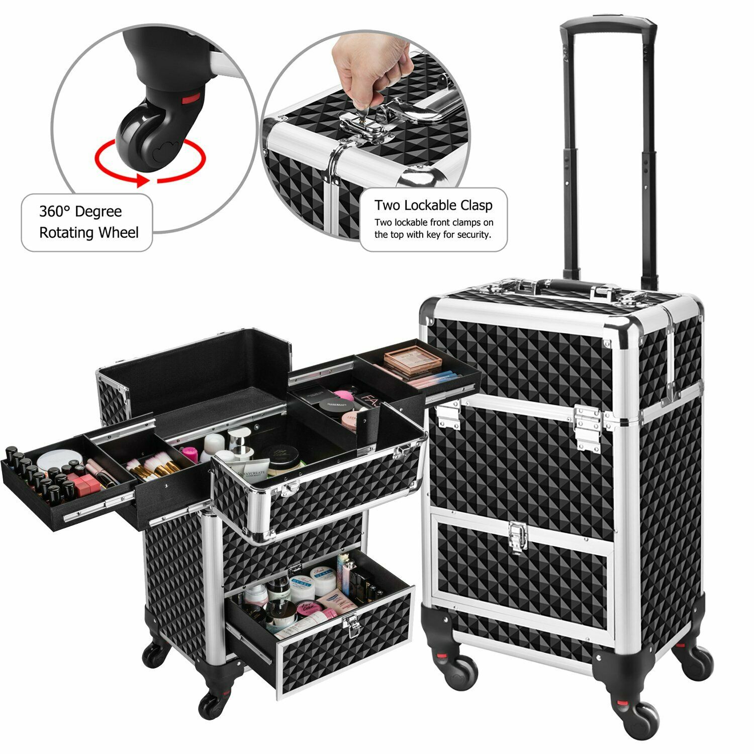 Extra Large Rolling Make-up Cosmetic Beauty Nail Polish Trolley Case Organiser