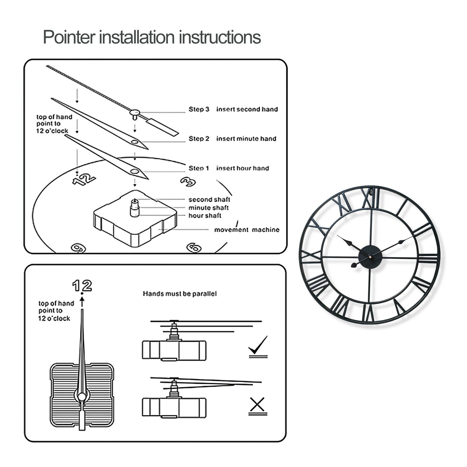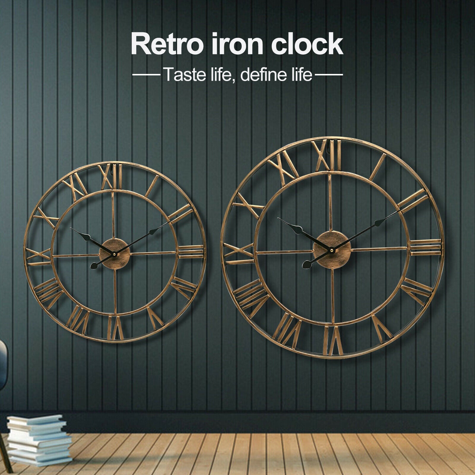 EXTRA LARGE ROMAN NUMERALS SKELETON 40/60CM WALL CLOCK BIG GIANT OPEN FACE ROUND