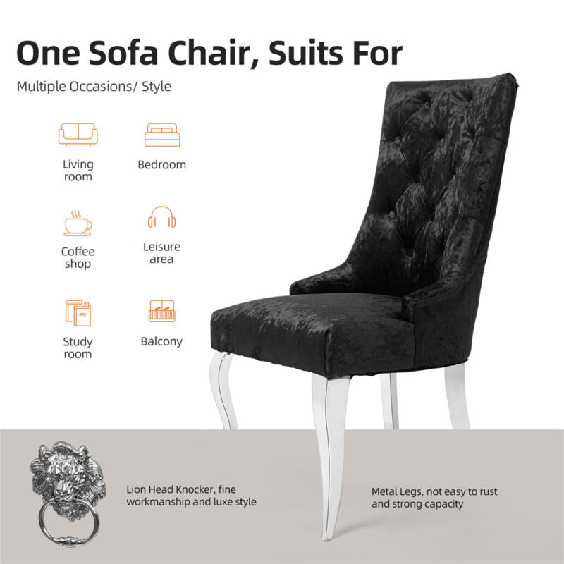 Velvet/Fabric FInish, Button Back Design, Fast and Free Delivery, Luxury Style, Studded Detailing, Padded Seat, Dining Chair, Knocker Style Chair