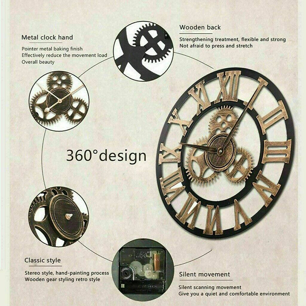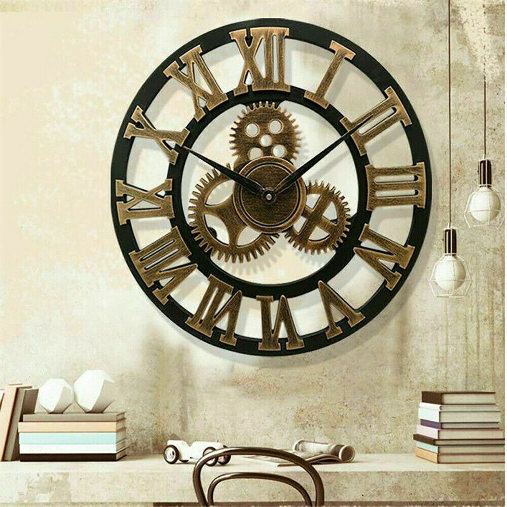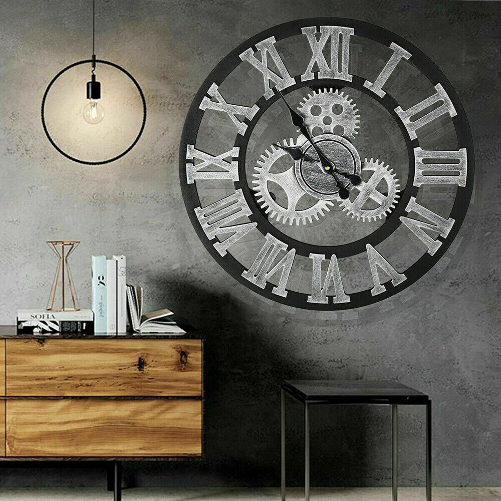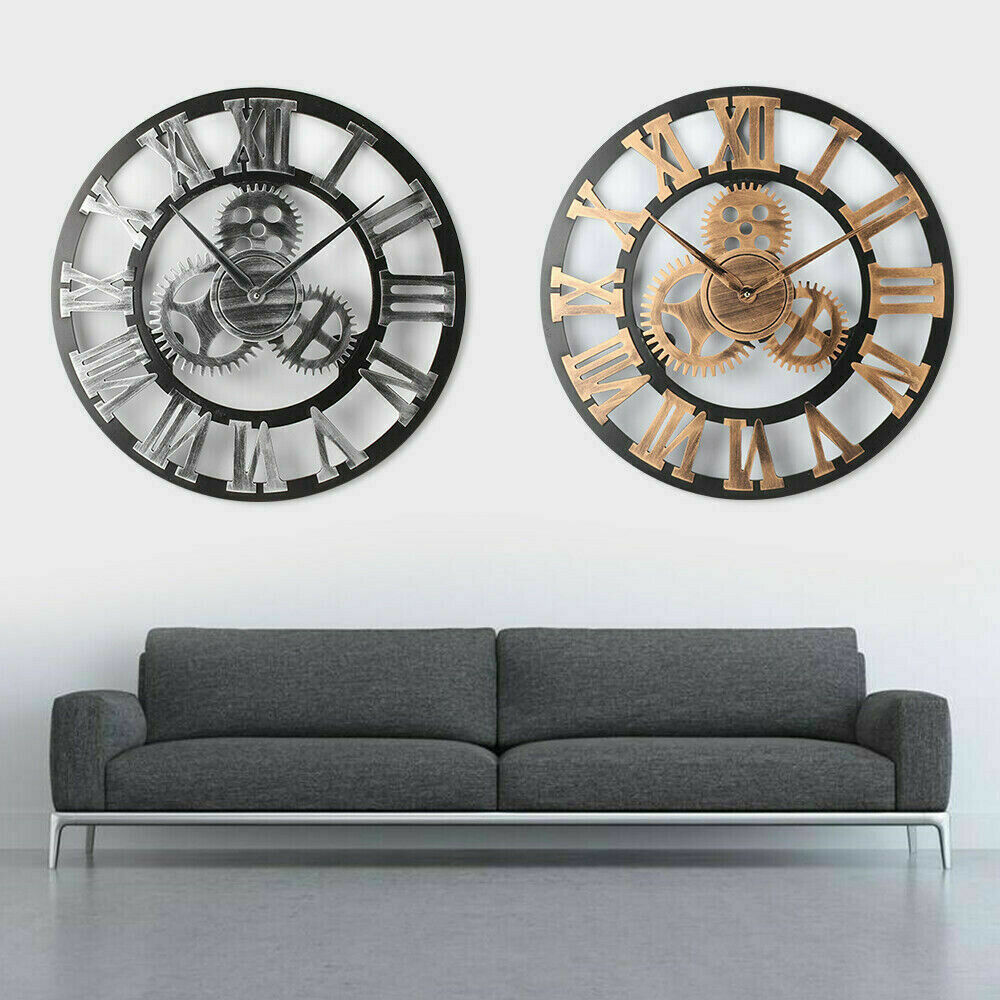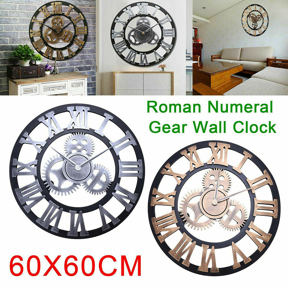 EXTRA LARGE WALL CLOCK ROMAN NUMERALS SKELETON ROUND BIG GIANT OPEN FACE 60CM