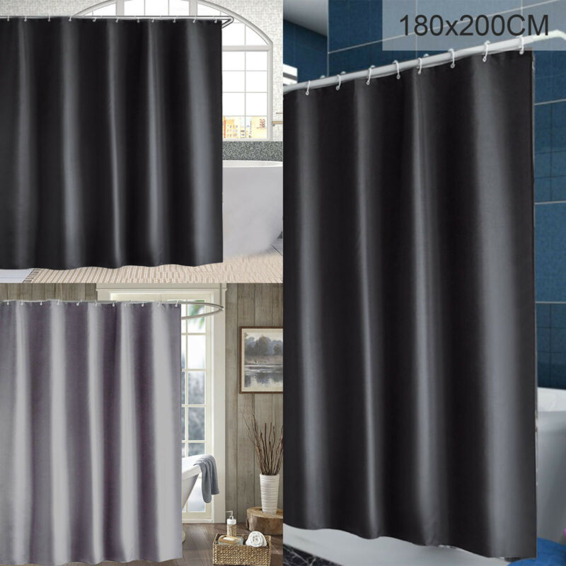 EXTRA LONG FABRIC SHOWER CURTAIN WATERPROOF WITH HOOKS WEIGHTED HEM 180 X 200CM