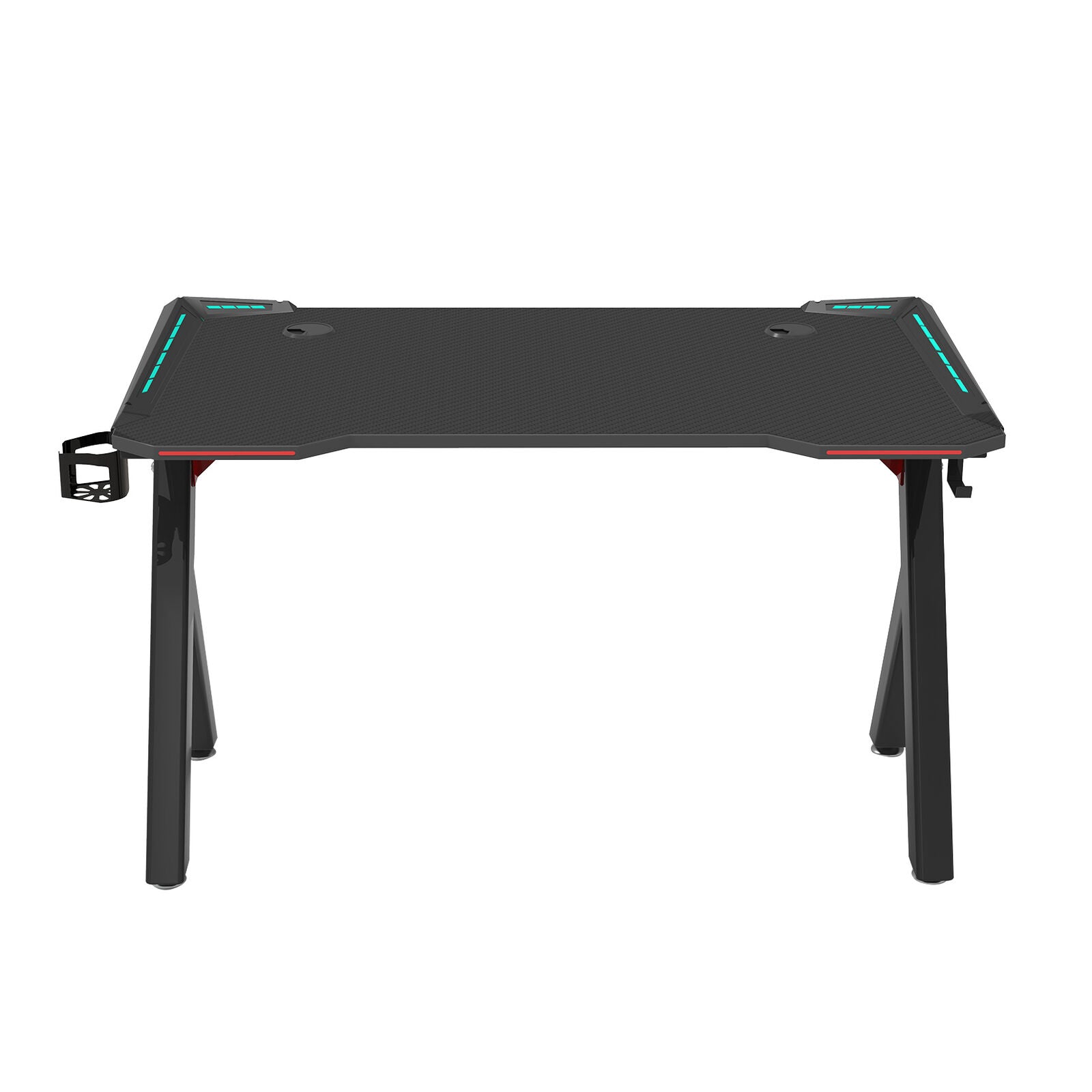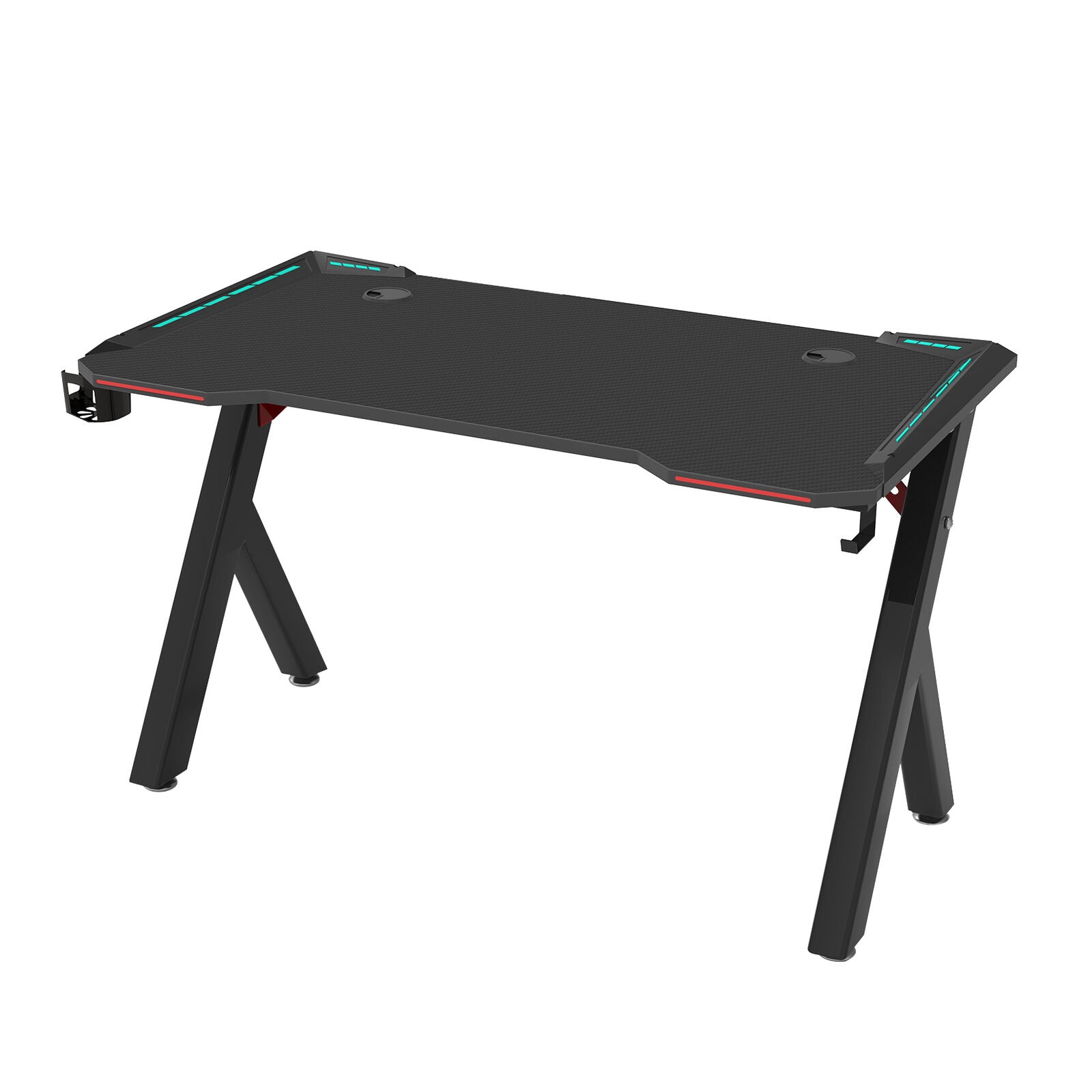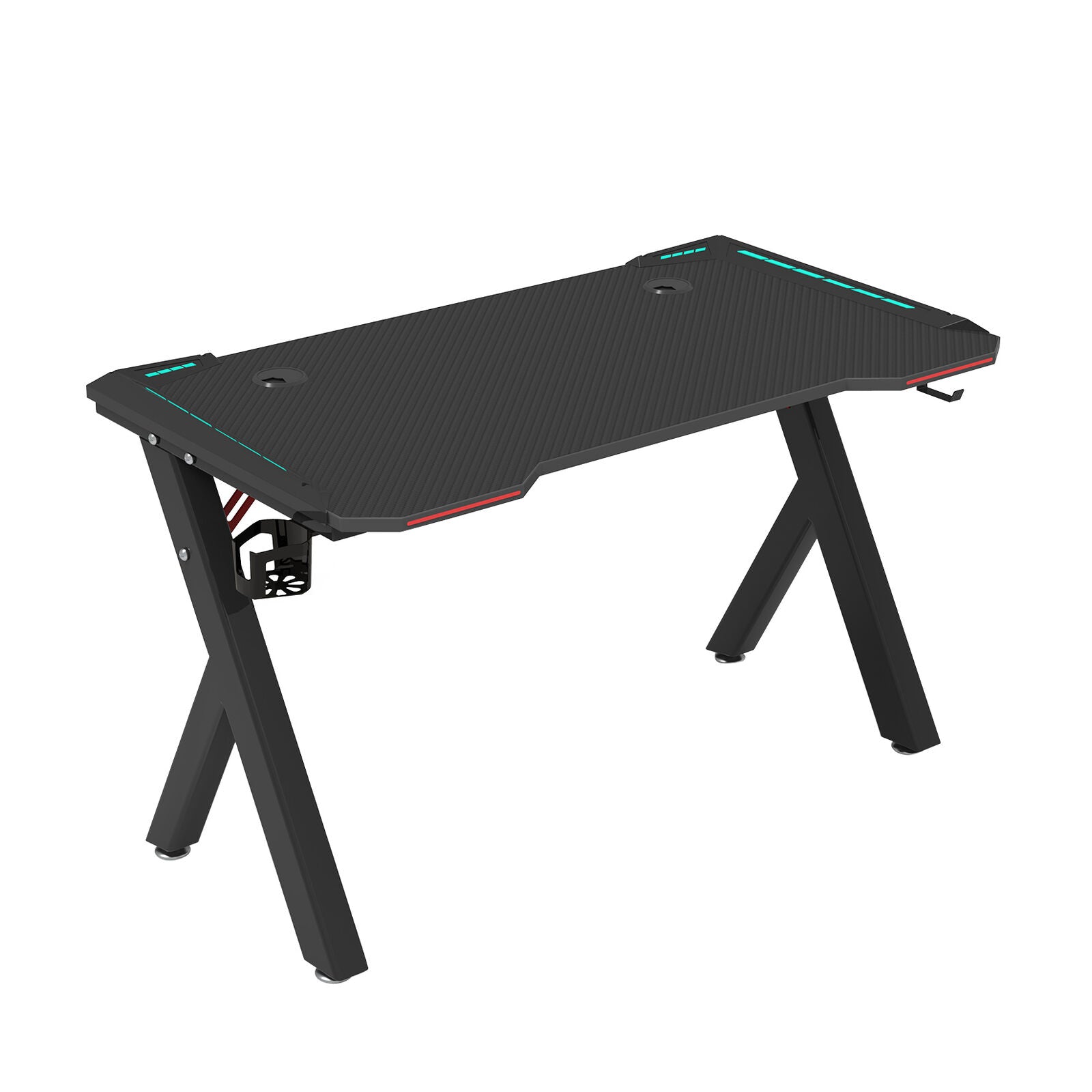 Extra Wide Black Carbon Effect Gaming Computer Desk Table with Holder Hook X Leg