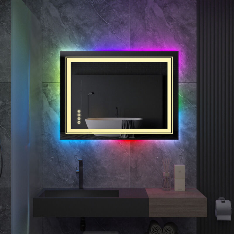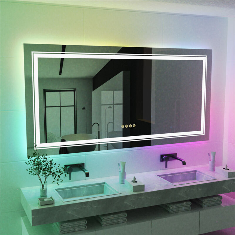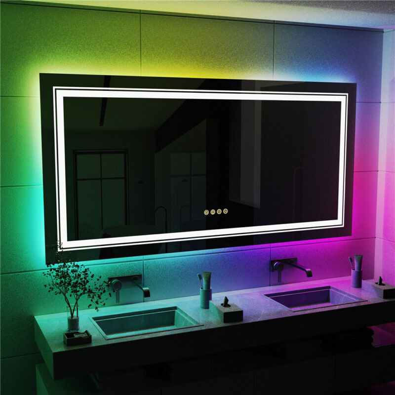 Extral Large Rectangular RGB Light LED Bathroom Mirror Illuminated Makeup Mirror