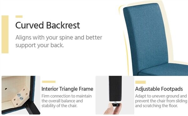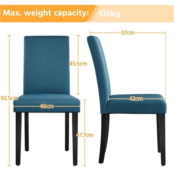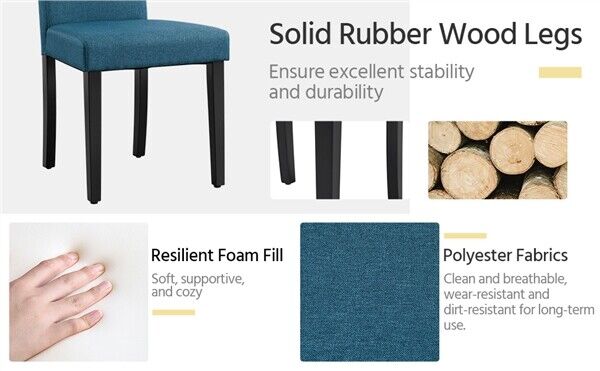 Fabric 4pcs Dining Chairs Kitchen Side Padded Chairs with Solid Wood Legs Blue