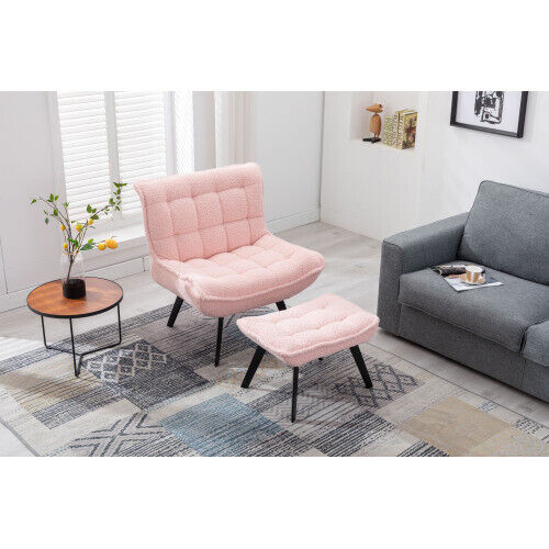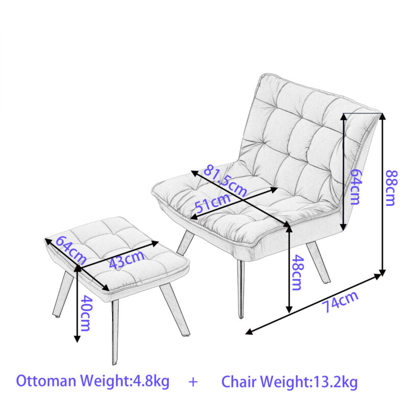 Fabric Accent Chair Footstool Modern Lounge Single Recliner Armchair TV Chair QC