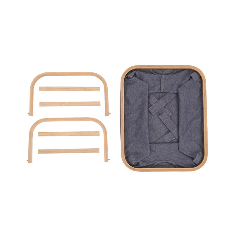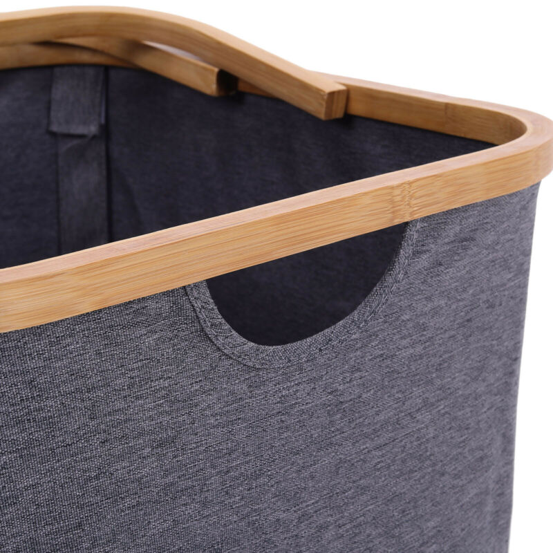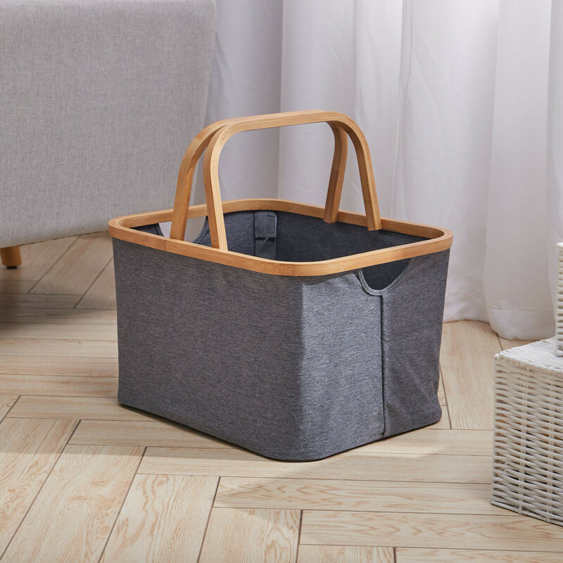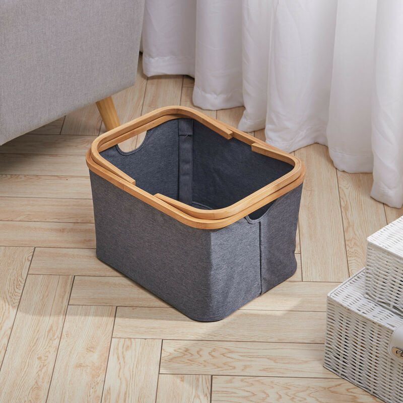 Fabric Basket With Bamboo Wood Handle Blanket Toys Storage Box Carrier Organizer