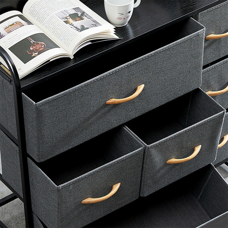 Fabric Bedside Table Cabinet Storage Unit Metal Frame Chest Of 7 Drawers Home BN