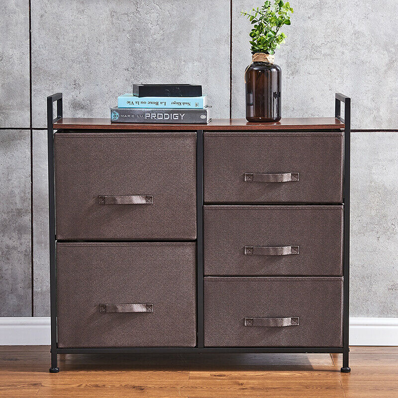 Fabric Chest of 3/4/5 Drawers Storage Cabinet Side Table Standing Home Brown UK