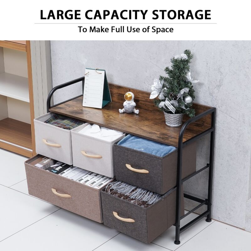Fabric Chest of Drawers 5-Drawer Dresser 2-tier Storage Organizer Unit Bedroom