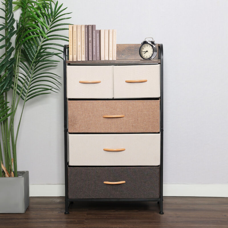 Fabric Chest of Drawers 5 Drawer Dresser Storage Cabinet Stand Bedroom Furniture
