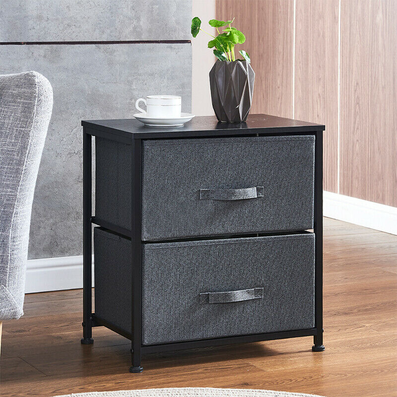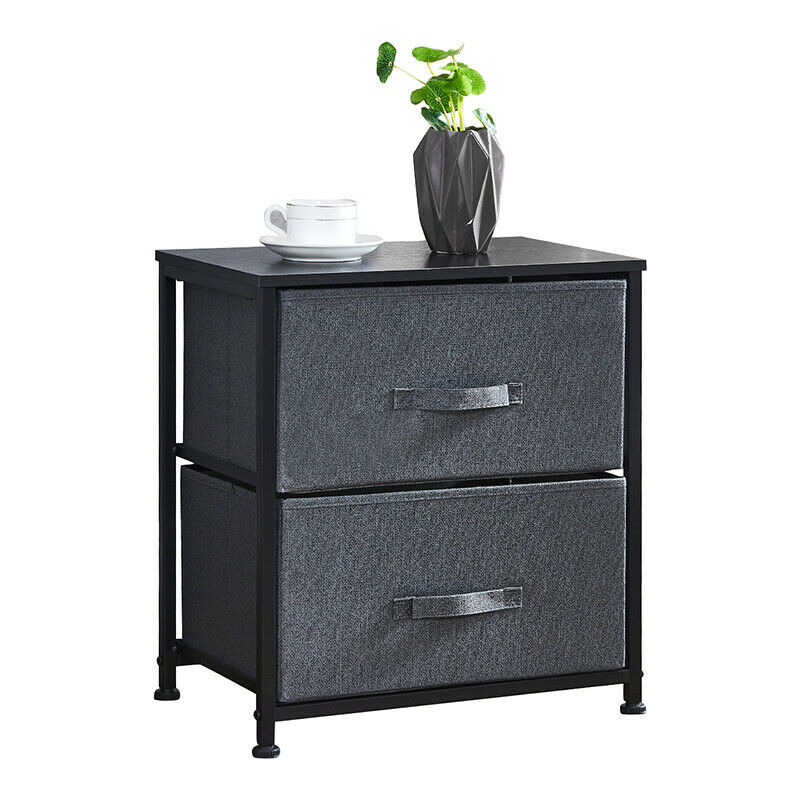 Fabric Chest of Drawers Bedside Cabinet Table Storage Unit Dark Grey Bedroom BN