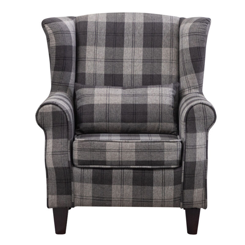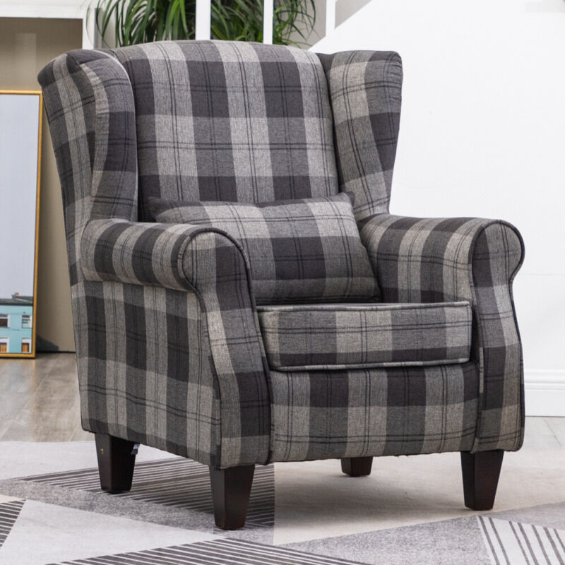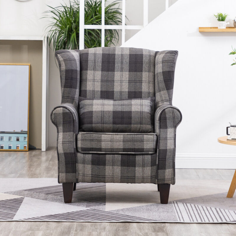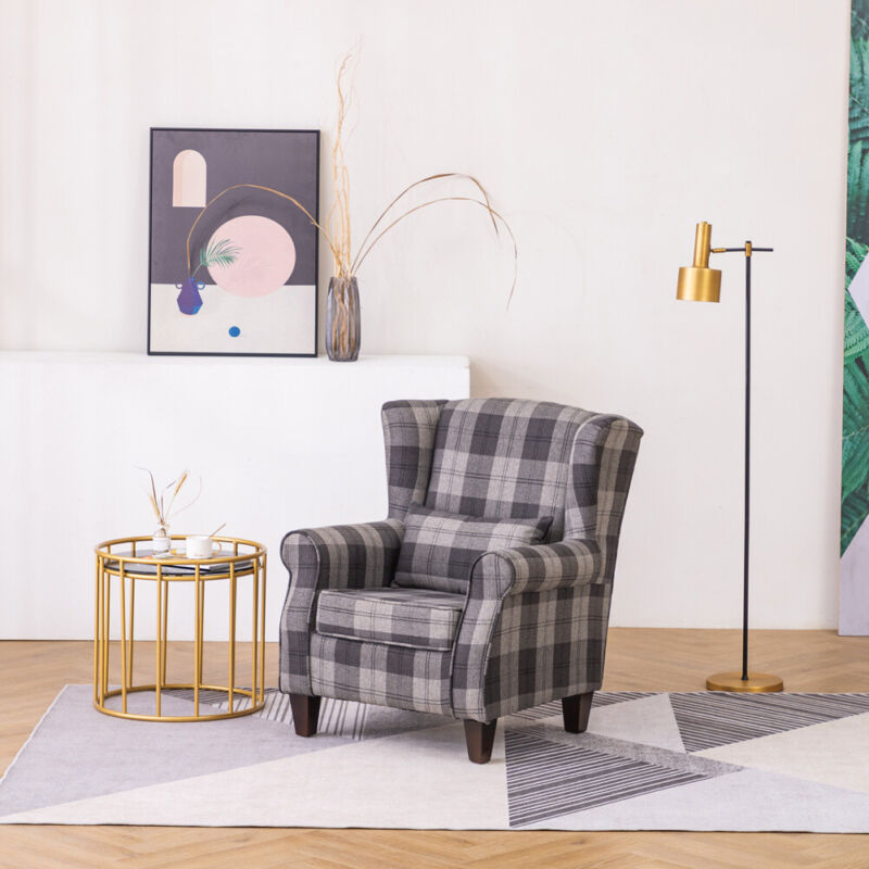 Fabric Padded Armchair High Wingback Occasional Accent Studded Chair Single Sofa
